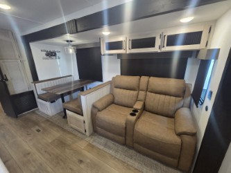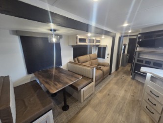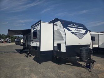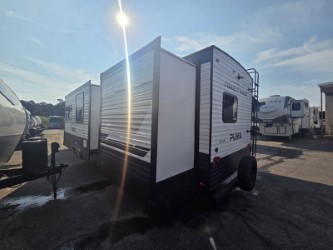 If you're looking for family-fun adventures then you need one of these Palomino Puma fifth wheels or travel trailers! They are built rugged, easy to tow, and jam packed with features. The Darco wrapped underbelly will protect your units vitals and the AlphaPly roofing membrane covers it. They also have new aluminum wheels and a powder coated steel I-beam frame. Inside, the Congoleum linoleum will be easy to keep clean, and the night roller shades will provide privacy when it's time to turn in. You'll also enjoy an electric awning with an LED light strip plus an AM/FM/Bluetooth stereo and two outside speakers to keep the party going!