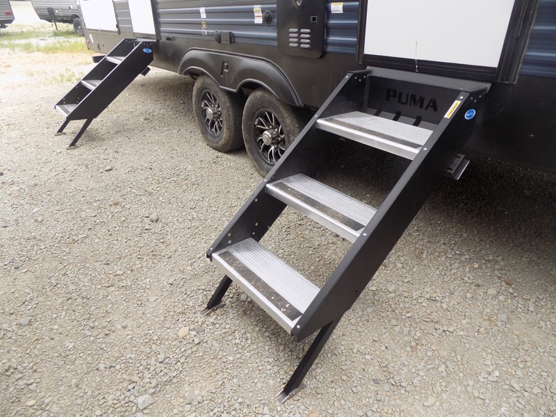 If you're looking for family-fun adventures then you need one of these Palomino Puma fifth wheels or travel trailers! They are built rugged, easy to tow, and jam packed with features. The Darco wrapped underbelly will protect your units vitals and the AlphaPly roofing membrane covers it. They also have new aluminum wheels and a powder coated steel I-beam frame. Inside, the Congoleum linoleum will be easy to keep clean, and the night roller shades will provide privacy when it's time to turn in. You'll also enjoy an electric awning with an LED light strip plus an AM/FM/Bluetooth stereo and two outside speakers to keep the party going!