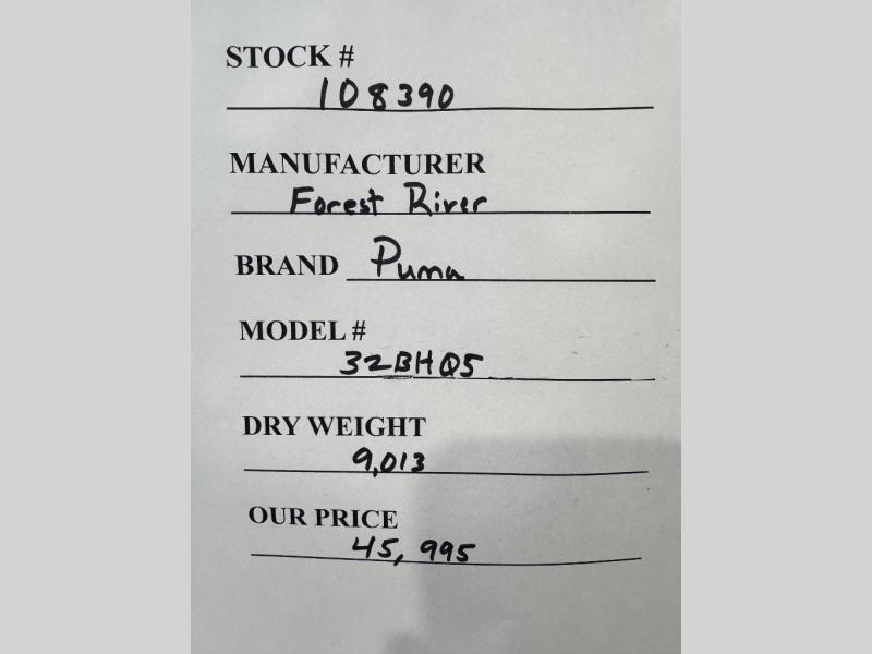 Forest River Puma 32BHQS travel trailer highlights: