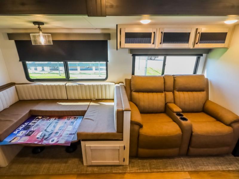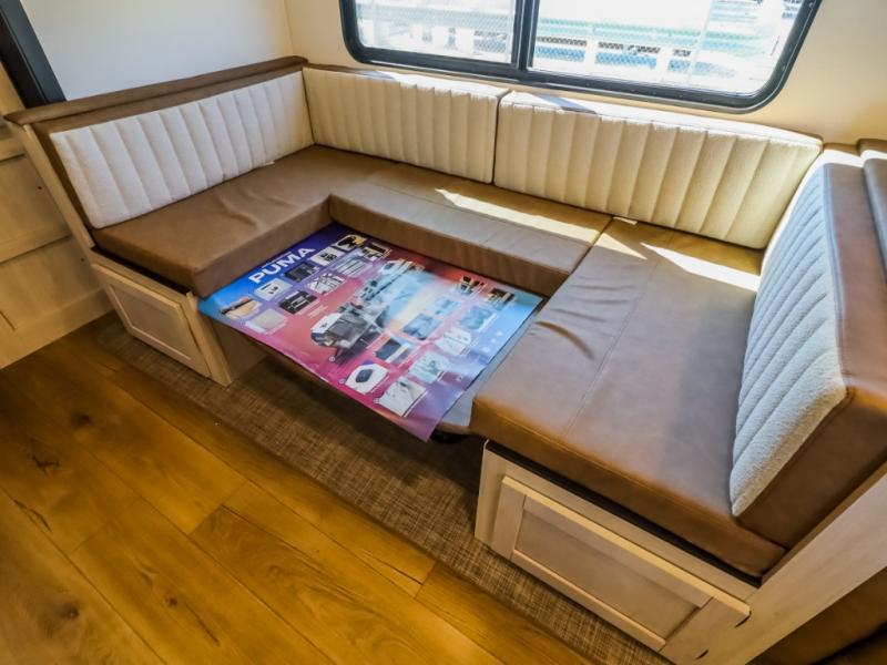 If you're looking for family-fun adventures, then you need one of these Forest River Puma travel trailers! They are built rugged, easy to tow, and jam packed with features. The Darco wrapped underbelly will help protect your unit, and the roof and side mount solar prep gives you the option to add off-grid power. Inside, the Congoleum linoleum will be easy to keep clean, and the night roller shades will provide privacy when it's time to turn in. You'll also enjoy an electric awning with an LED light strip plus an AM/FM/Bluetooth stereo and two outside speakers to keep the party going!