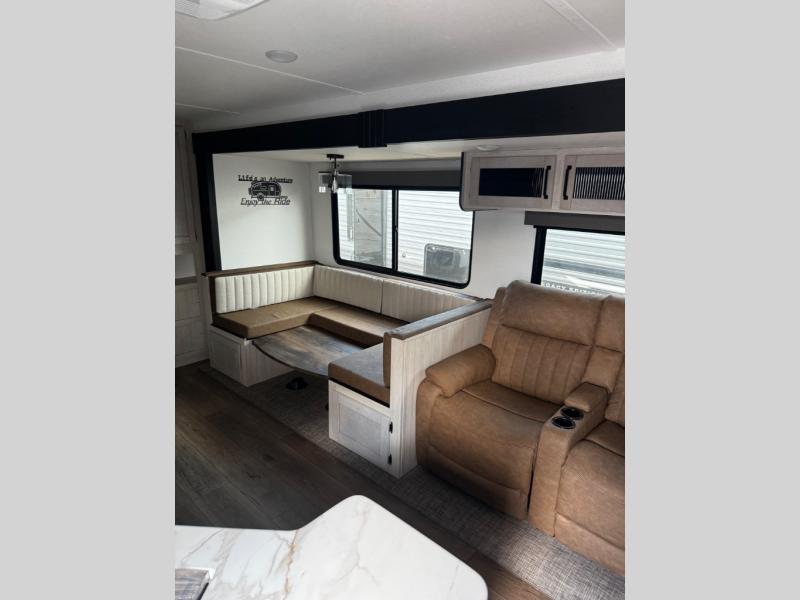 If you're looking for family-fun adventures then you need one of these Palomino Puma fifth wheels or travel trailers! They are built rugged, easy to tow, and jam packed with features. The Darco wrapped underbelly will protect your units vitals and the AlphaPly roofing membrane covers it. They also have new aluminum wheels and a powder coated steel I-beam frame. Inside, the Congoleum linoleum will be easy to keep clean, and the night roller shades will provide privacy when it's time to turn in. You'll also enjoy an electric awning with an LED light strip plus an AM/FM/Bluetooth stereo and two outside speakers to keep the party going!