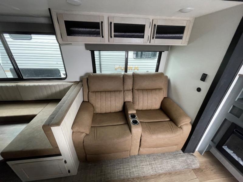 If you're looking for family-fun adventures then you need one of these Palomino Puma fifth wheels or travel trailers! They are built rugged, easy to tow, and jam packed with features. The Darco wrapped underbelly will protect your units vitals and the AlphaPly roofing membrane covers it. They also have new aluminum wheels and a powder coated steel I-beam frame. Inside, the Congoleum linoleum will be easy to keep clean, and the night roller shades will provide privacy when it's time to turn in. You'll also enjoy an electric awning with an LED light strip plus an AM/FM/Bluetooth stereo and two outside speakers to keep the party going!