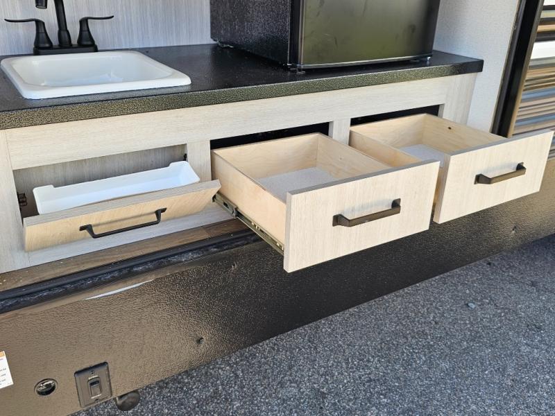$11,652 in options including Outside Kitchen with Refrigerator, Sink, Griddle and Microwave, Theater Seating IPO Jack-knife Sofa, 32" TV in Living Room and more Call 984-223-2203 or come by today