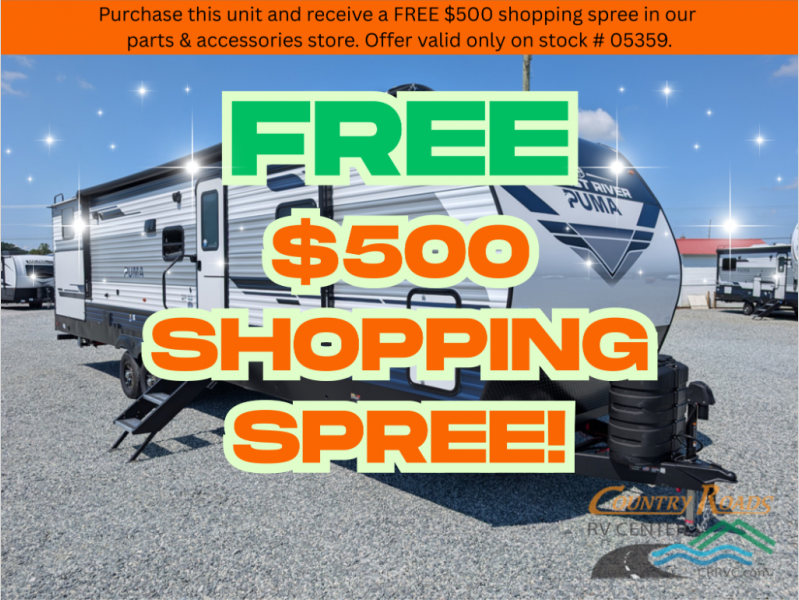 If you're looking for family-fun adventures then you need one of these Palomino Puma fifth wheels or travel trailers! They are built rugged, easy to tow, and jam packed with features. The Darco wrapped underbelly will protect your units vitals and the AlphaPly roofing membrane covers it. They also have new aluminum wheels and a powder coated steel I-beam frame. Inside, the Congoleum linoleum will be easy to keep clean, and the night roller shades will provide privacy when it's time to turn in. You'll also enjoy an electric awning with an LED light strip plus an AM/FM/Bluetooth stereo and two outside speakers to keep the party going!