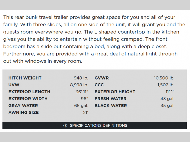 If you're looking for family-fun adventures then you need one of these Palomino Puma fifth wheels or travel trailers! They are built rugged, easy to tow, and jam packed with features. The Darco wrapped underbelly will protect your units vitals and the AlphaPly roofing membrane covers it. They also have new aluminum wheels and a powder coated steel I-beam frame. Inside, the Congoleum linoleum will be easy to keep clean, and the night roller shades will provide privacy when it's time to turn in. You'll also enjoy an electric awning with an LED light strip plus an AM/FM/Bluetooth stereo and two outside speakers to keep the party going!