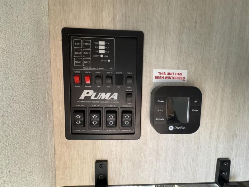 If you're looking for family-fun adventures then you need one of these Palomino Puma fifth wheels or travel trailers! They are built rugged, easy to tow, and jam packed with features. The Darco wrapped underbelly will protect your units vitals and the AlphaPly roofing membrane covers it. They also have new aluminum wheels and a powder coated steel I-beam frame. Inside, the Congoleum linoleum will be easy to keep clean, and the night roller shades will provide privacy when it's time to turn in. You'll also enjoy an electric awning with an LED light strip plus an AM/FM/Bluetooth stereo and two outside speakers to keep the party going!