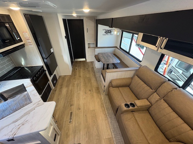 If you're looking for family-fun adventures, then you need one of these Forest River Puma travel trailers! They are built rugged, easy to tow, and jam packed with features. The Darco wrapped underbelly will help protect your unit, and the roof and side mount solar prep gives you the option to add off-grid power. Inside, the Congoleum linoleum will be easy to keep clean, and the night roller shades will provide privacy when it's time to turn in. You'll also enjoy an electric awning with an LED light strip plus an AM/FM/Bluetooth stereo and two outside speakers to keep the party going!