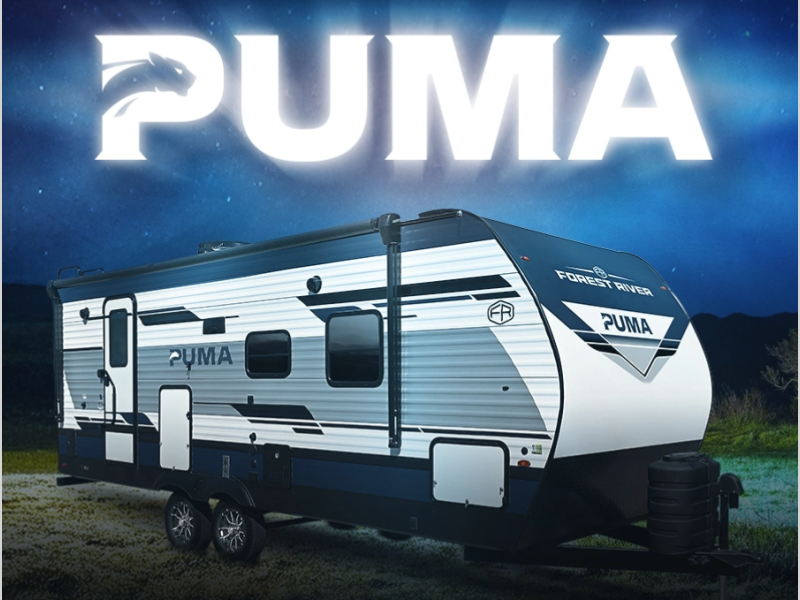 If you're looking for family-fun adventures, then you need one of these Forest River Puma travel trailers! They are built rugged, easy to tow, and jam packed with features. The Darco wrapped underbelly will help protect your unit, and the roof and side mount solar prep gives you the option to add off-grid power. Inside, the Congoleum linoleum will be easy to keep clean, and the night roller shades will provide privacy when it's time to turn in. You'll also enjoy an electric awning with an LED light strip plus an AM/FM/Bluetooth stereo and two outside speakers to keep the party going!