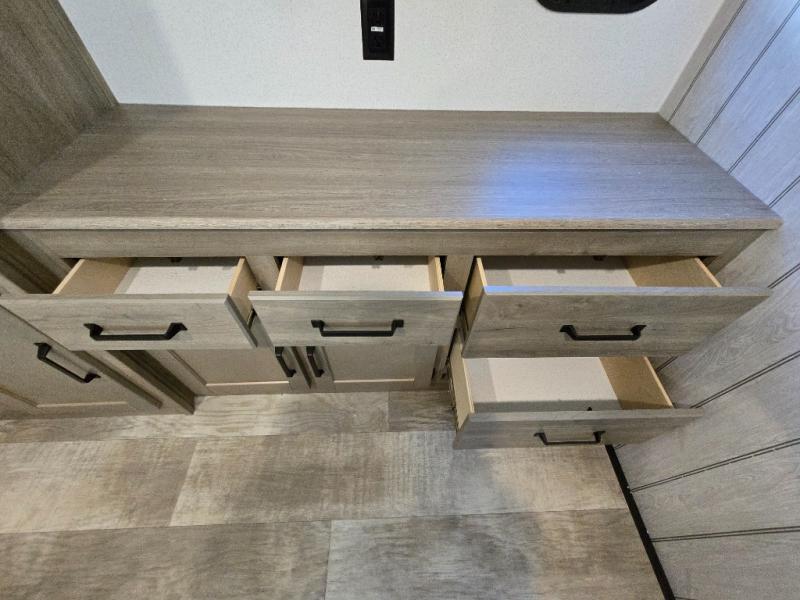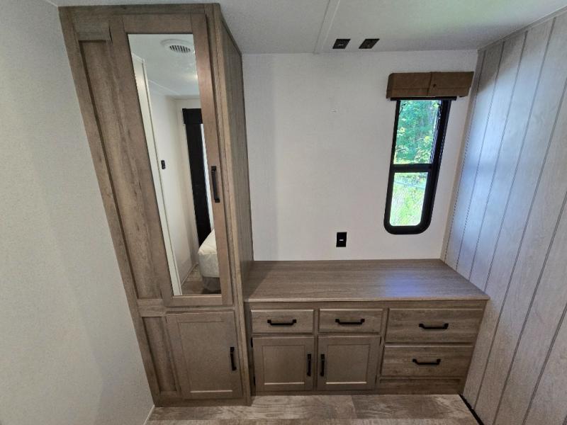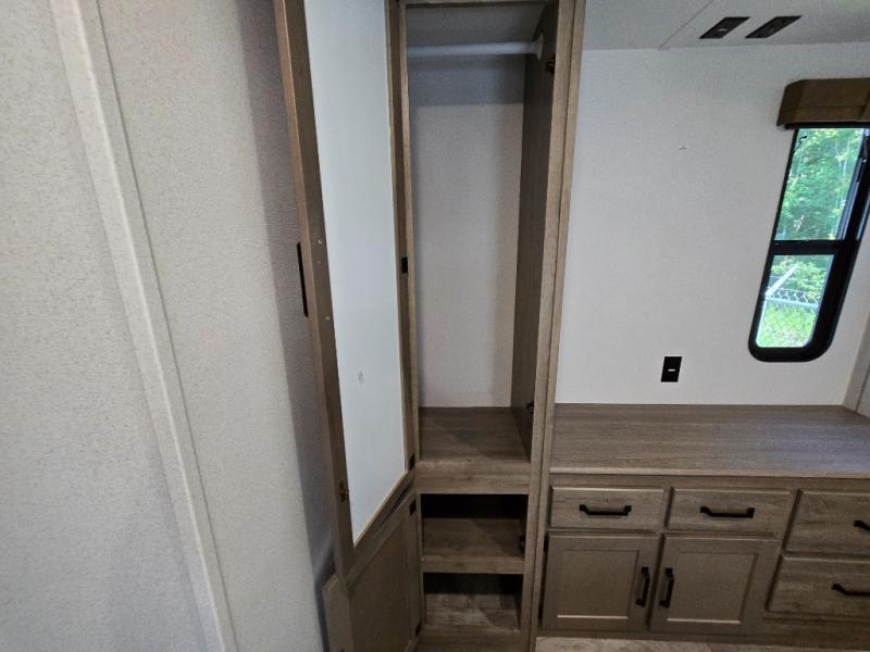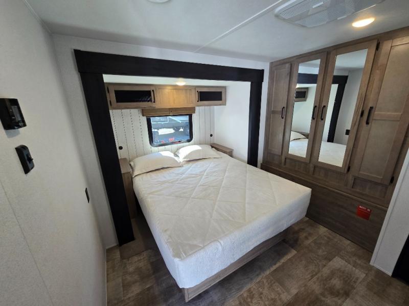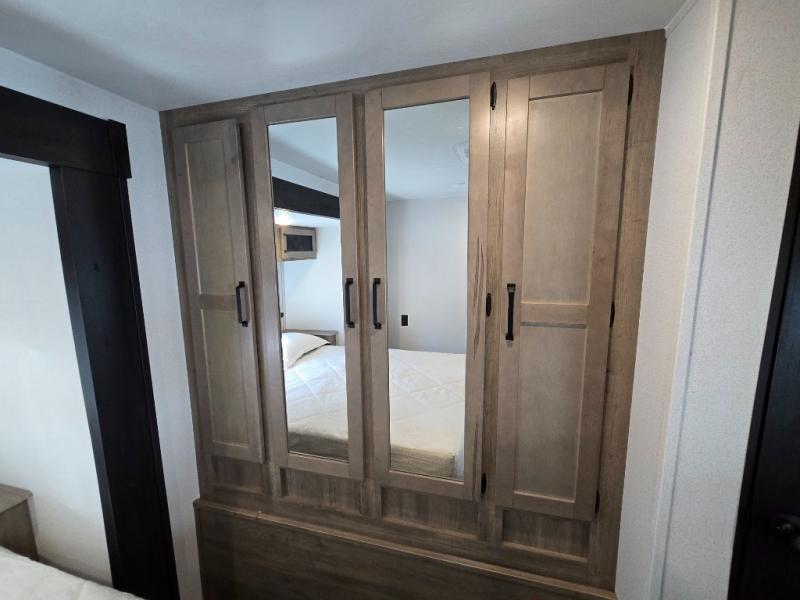 Take your camping experience to the next level with the Palomino Puma 32RBFQ2, designed for families or groups who love both comfort and space. With two private queen bedrooms—one in the front and one in the rear—everyone enjoys a personal retreat after a day of adventure. Each bedroom features a slide-out bed, dresser, and generous closet space, including washer and dryer prep in the front.