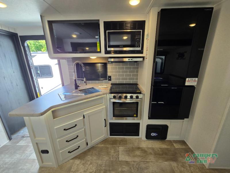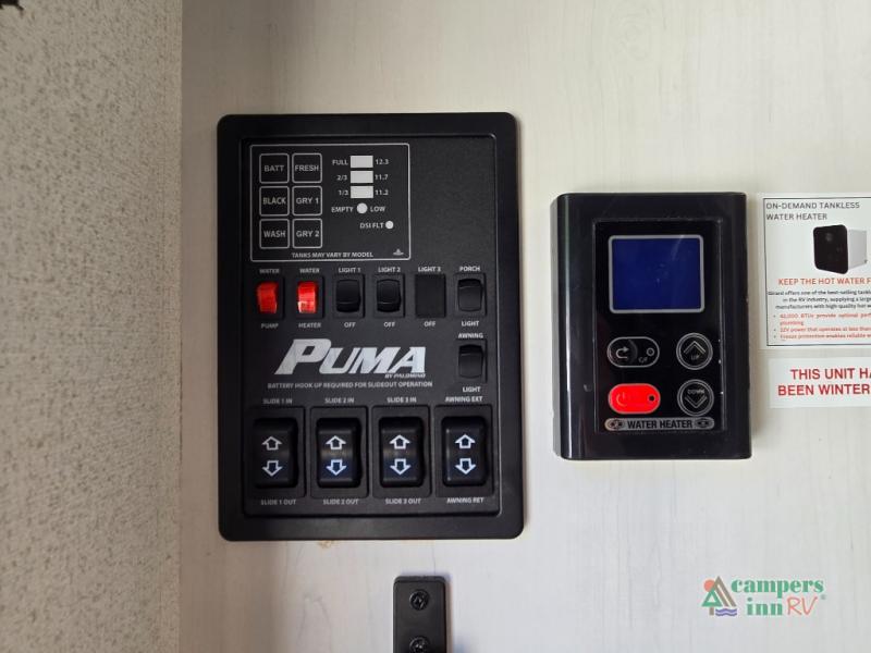 If you're looking for family-fun adventures then you need one of these Palomino Puma fifth wheels or travel trailers! They are built rugged, easy to tow, and jam packed with features. The Darco wrapped underbelly will protect your units vitals and the AlphaPly roofing membrane covers it. They also have new aluminum wheels and a powder coated steel I-beam frame. Inside, the Congoleum linoleum will be easy to keep clean, and the night roller shades will provide privacy when it's time to turn in. You'll also enjoy an electric awning with an LED light strip plus an AM/FM/Bluetooth stereo and two outside speakers to keep the party going!