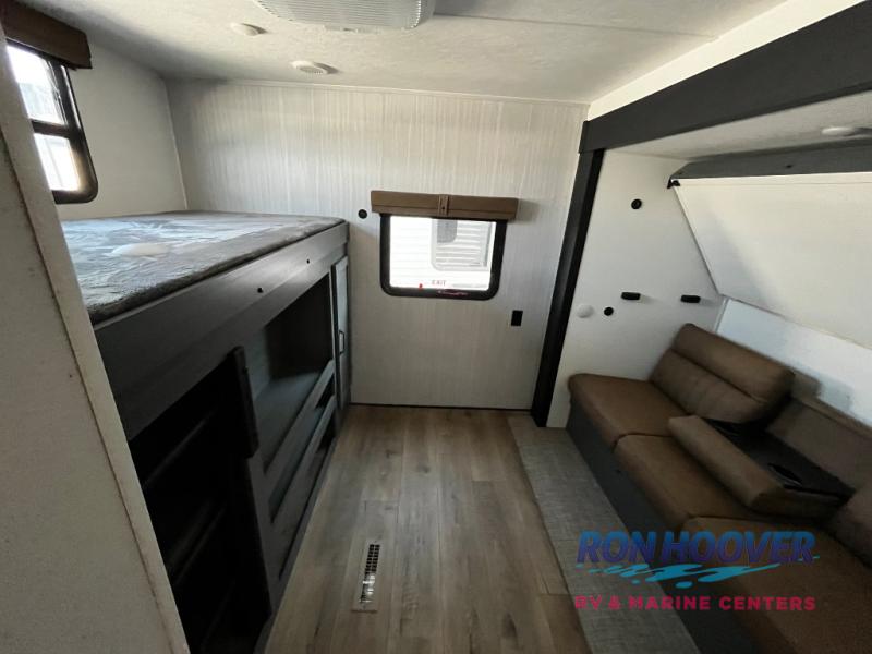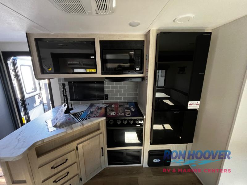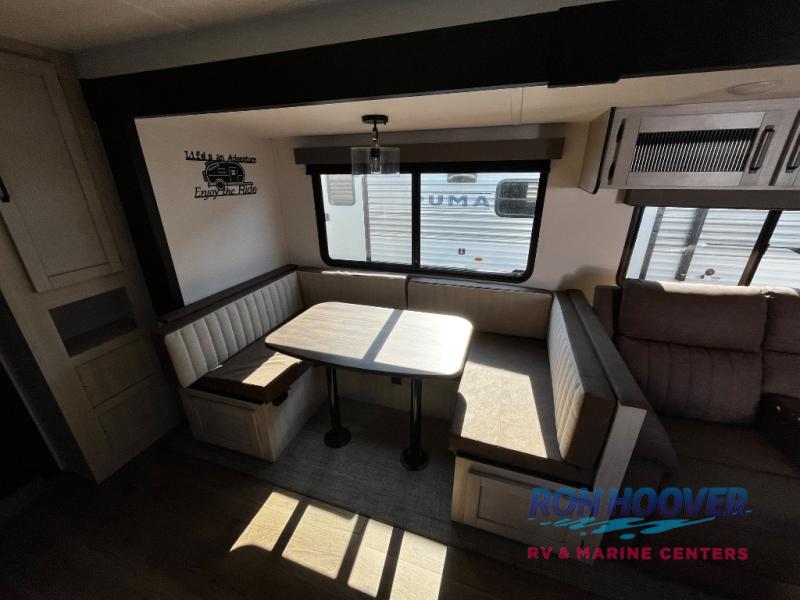 If you're looking for family-fun adventures, then you need one of these Forest River Puma travel trailers! They are built rugged, easy to tow, and jam packed with features. The Darco wrapped underbelly will help protect your unit, and the roof and side mount solar prep gives you the option to add off-grid power. Inside, the Congoleum linoleum will be easy to keep clean, and the night roller shades will provide privacy when it's time to turn in. You'll also enjoy an electric awning with an LED light strip plus an AM/FM/Bluetooth stereo and two outside speakers to keep the party going!