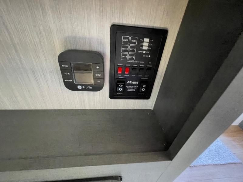 If you're looking for family-fun adventures then you need one of these Palomino Puma fifth wheels or travel trailers! They are built rugged, easy to tow, and jam packed with features. The Darco wrapped underbelly will protect your units vitals and the AlphaPly roofing membrane covers it. They also have new aluminum wheels and a powder coated steel I-beam frame. Inside, the Congoleum linoleum will be easy to keep clean, and the night roller shades will provide privacy when it's time to turn in. You'll also enjoy an electric awning with an LED light strip plus an AM/FM/Bluetooth stereo and two outside speakers to keep the party going!