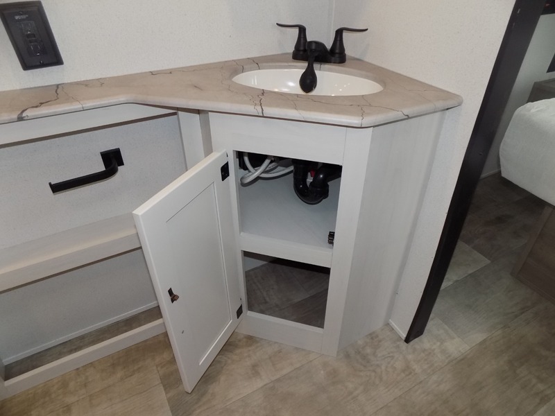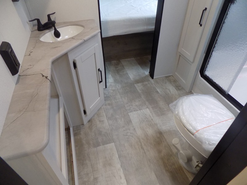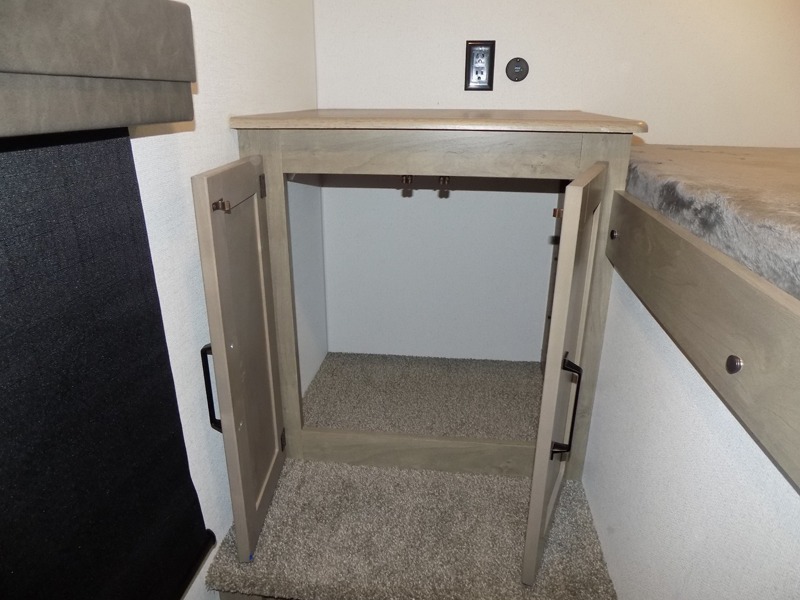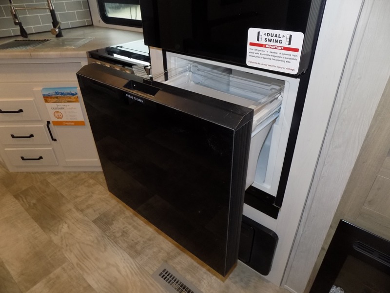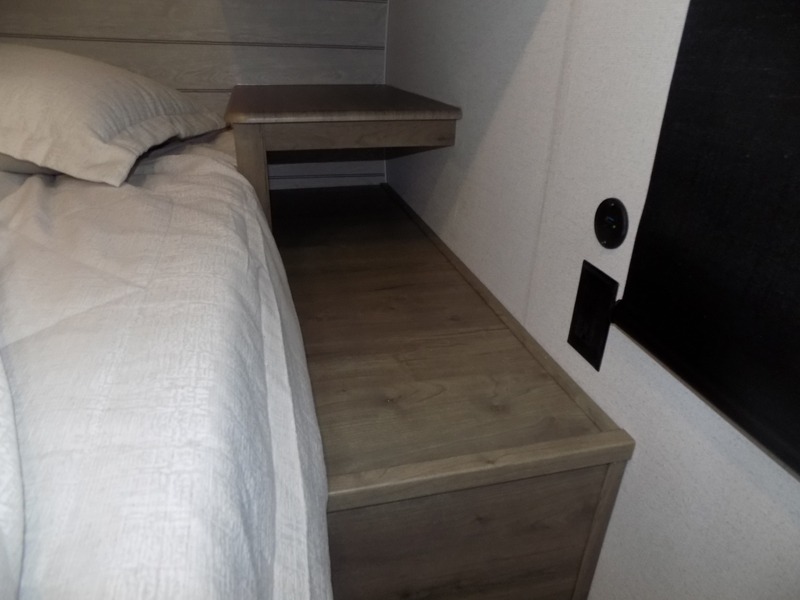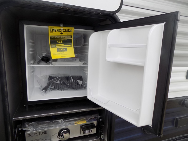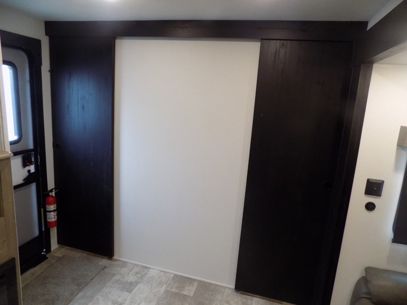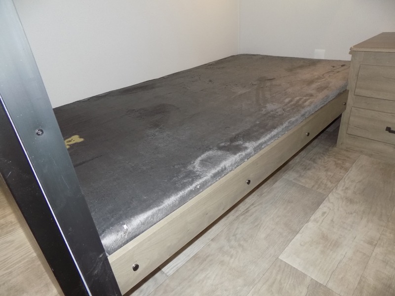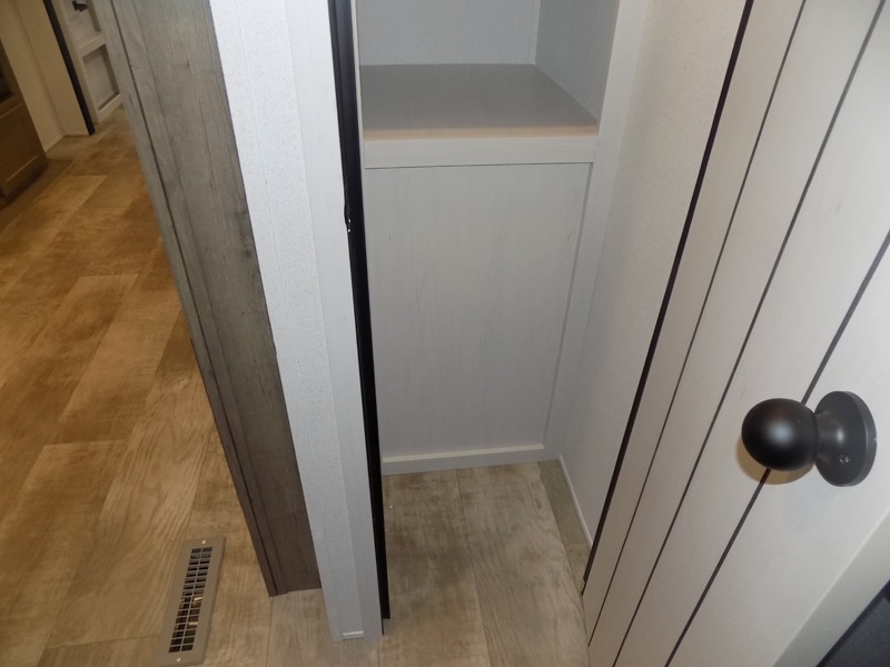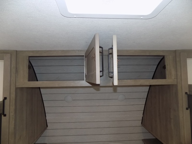 This travel trailer is perfect for camping with a larger group of friends or if you have older kids since there are two private bunkrooms! Each room includes a bunk bed and storage space for clothes, shoes, and more. You'll enjoy your own space up front in the master bedroom that includes a queen bed, dual shirt closets, and one of the dual entry doors to the unit for added convenience. Everyone can come together in the combined living area and kitchen that includes a large slide out with a sofa and booth dinette, plus there is a fireplace to make this space feel more like home. A full kitchen inside lets you create home-cooked meals each day, and you can choose to add the optional micro kitchen with a griddle for a pancake breakfast outdoors!