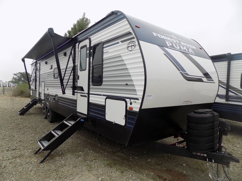 If you're looking for family-fun adventures then you need one of these Palomino Puma fifth wheels or travel trailers! They are built rugged, easy to tow, and jam packed with features. The Darco wrapped underbelly will protect your units vitals and the AlphaPly roofing membrane covers it. They also have new aluminum wheels and a powder coated steel I-beam frame. Inside, the Congoleum linoleum will be easy to keep clean, and the night roller shades will provide privacy when it's time to turn in. You'll also enjoy an electric awning with an LED light strip plus an AM/FM/Bluetooth stereo and two outside speakers to keep the party going!