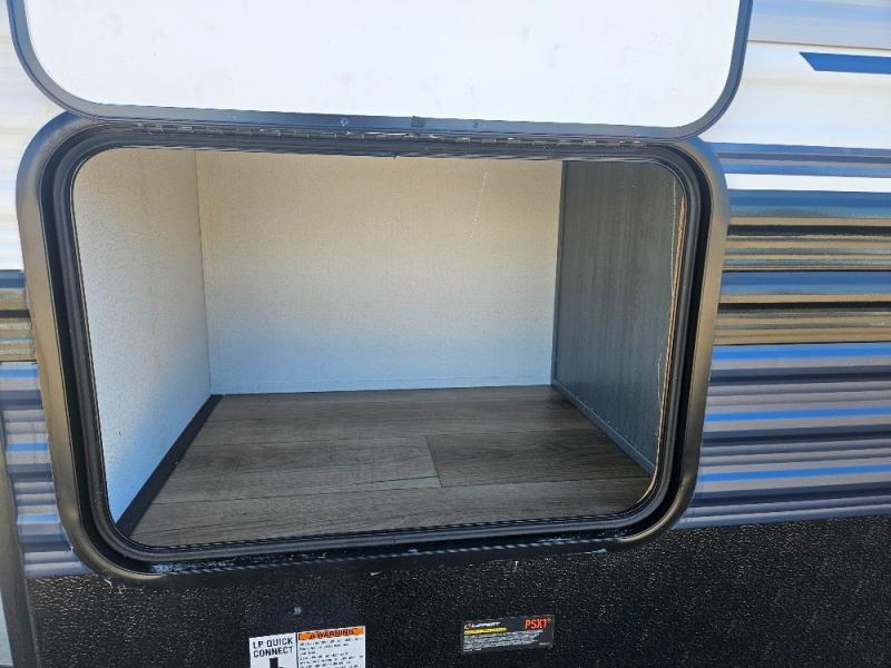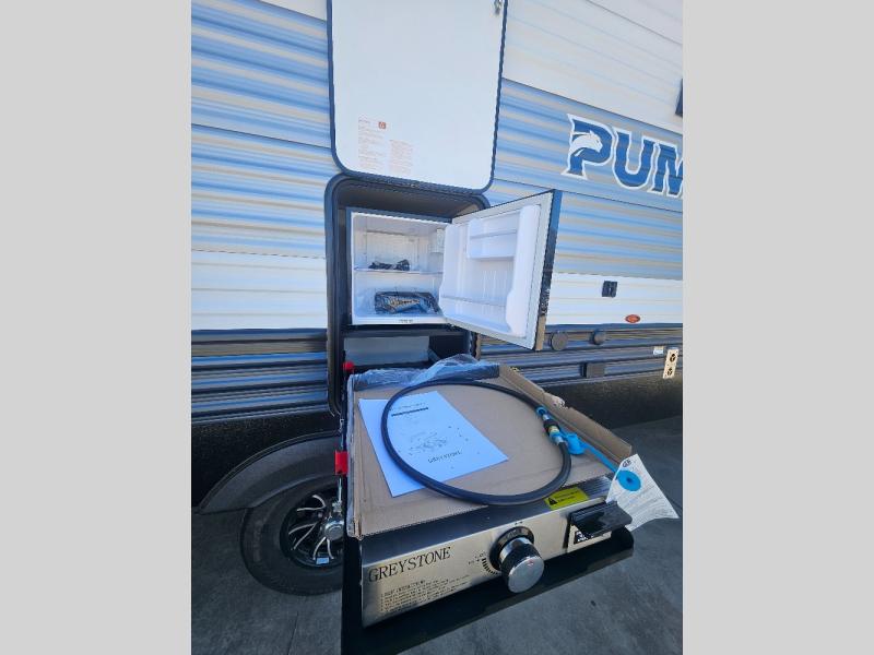 If you're looking for family-fun adventures, then you need one of these Forest River Puma travel trailers! They are built rugged, easy to tow, and jam packed with features. The Darco wrapped underbelly will help protect your unit, and the roof and side mount solar prep gives you the option to add off-grid power. Inside, the Congoleum linoleum will be easy to keep clean, and the night roller shades will provide privacy when it's time to turn in. You'll also enjoy an electric awning with an LED light strip plus an AM/FM/Bluetooth stereo and two outside speakers to keep the party going!