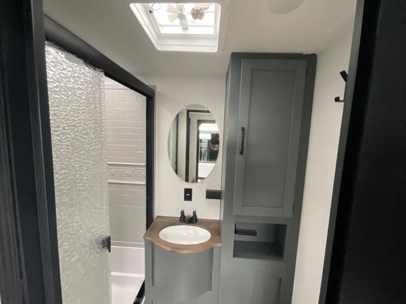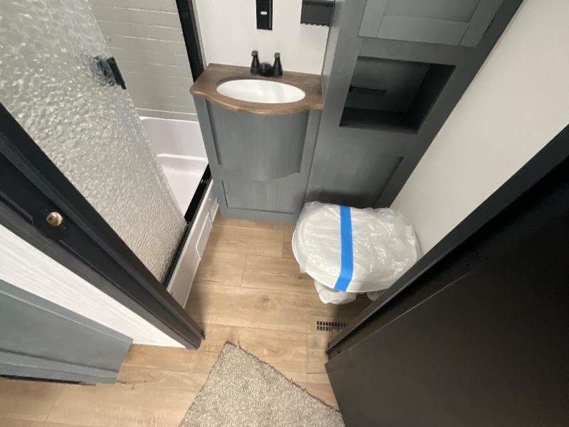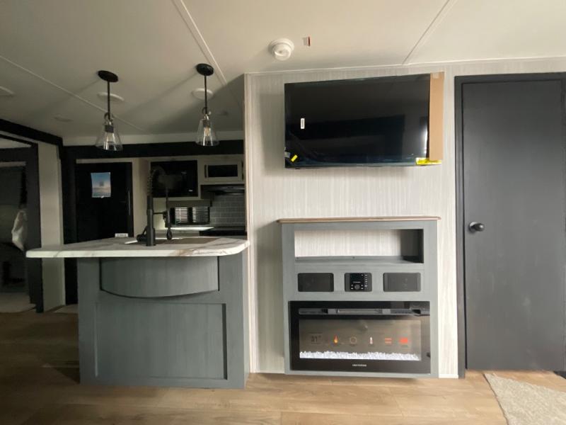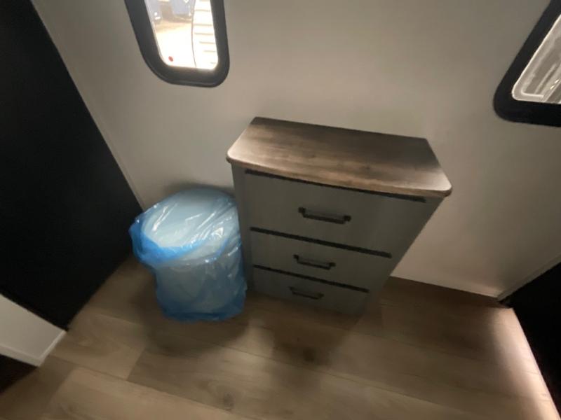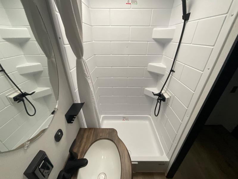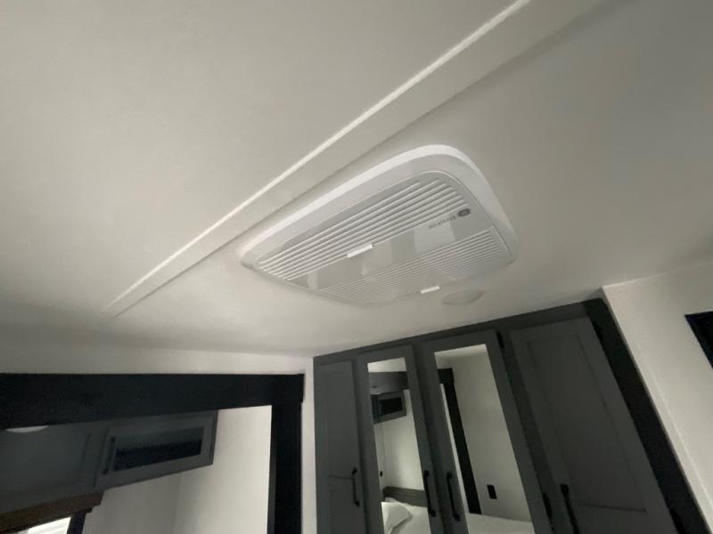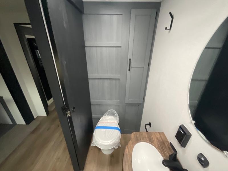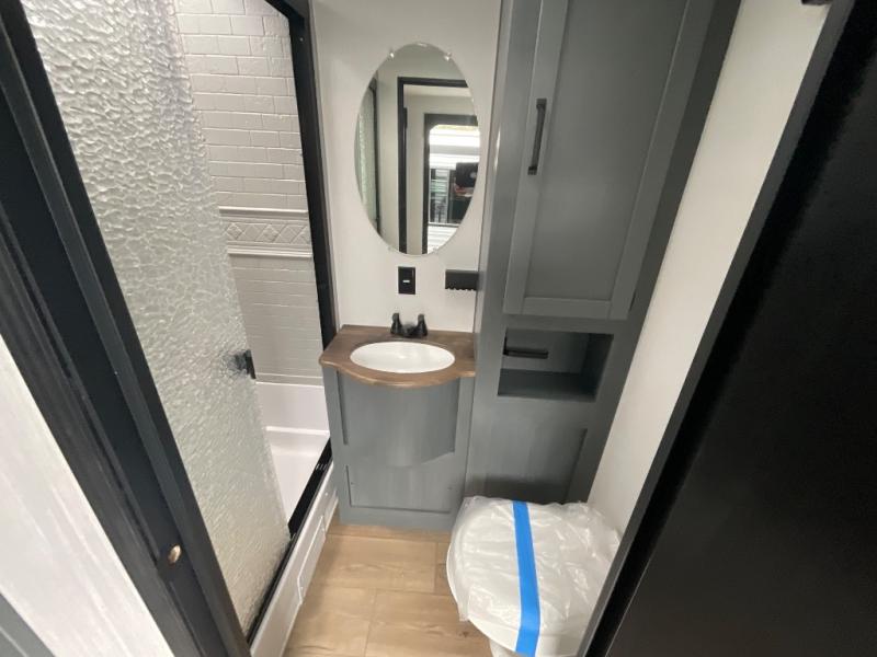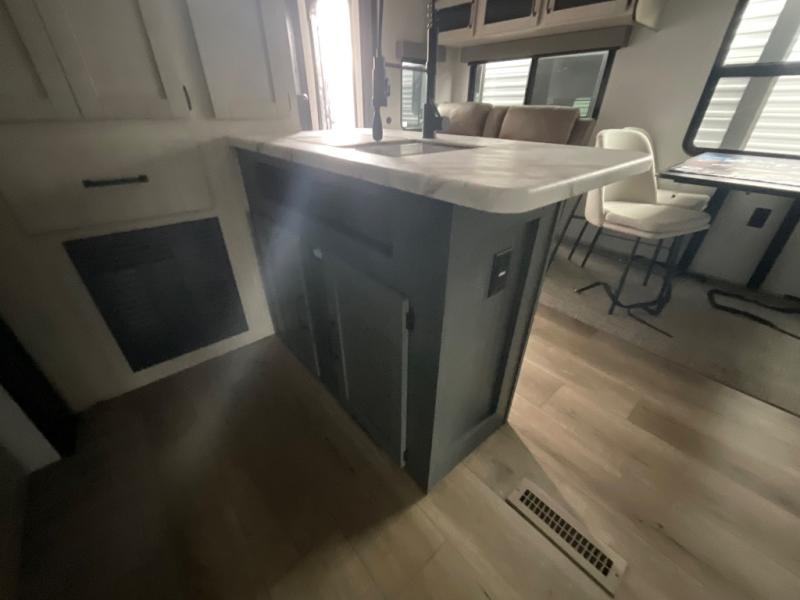 If you enjoy camping with friends or family, this travel trailer will be perfect for you! There are two bedrooms with queen bed slide outs and storage space, plus the rear bedroom includes its own full bath for added comfort. A bunkhouse suite option is also available if you choose the jiffy sofa with a bunk in place of the queen bed in the rear bedroom. Everyone can meet in the combined kitchen and living area that includes a counter peninsula, a spacious pantry, all the kitchen appliances to cook meals, plus a table with chairs and bench seating. There is also a sofa with overhead storage for more seating and sleeping space. Don't let this impressive travel trailer slip away!