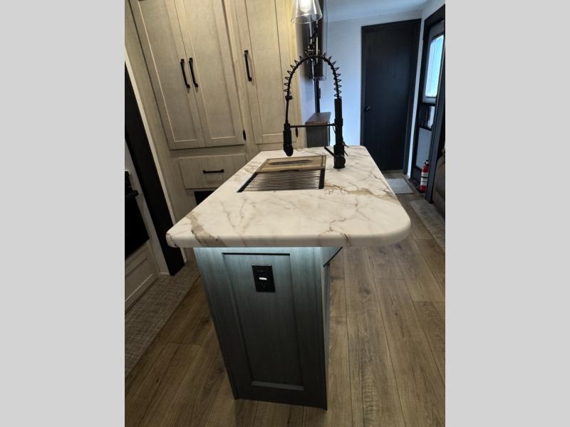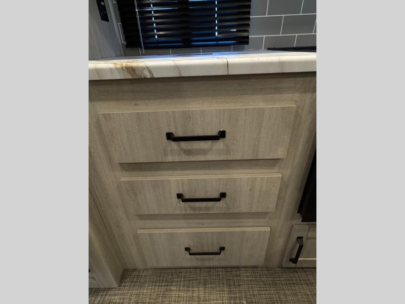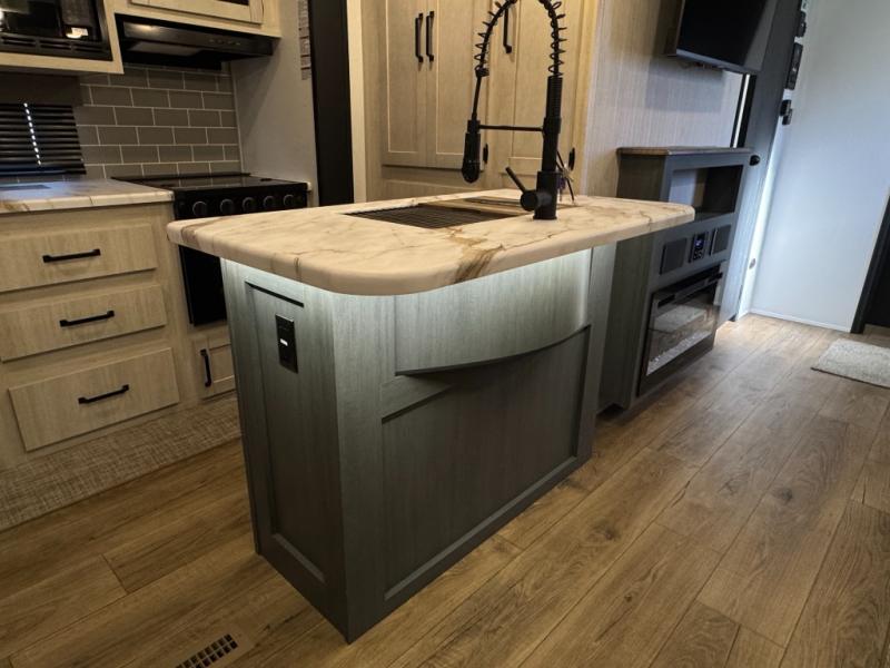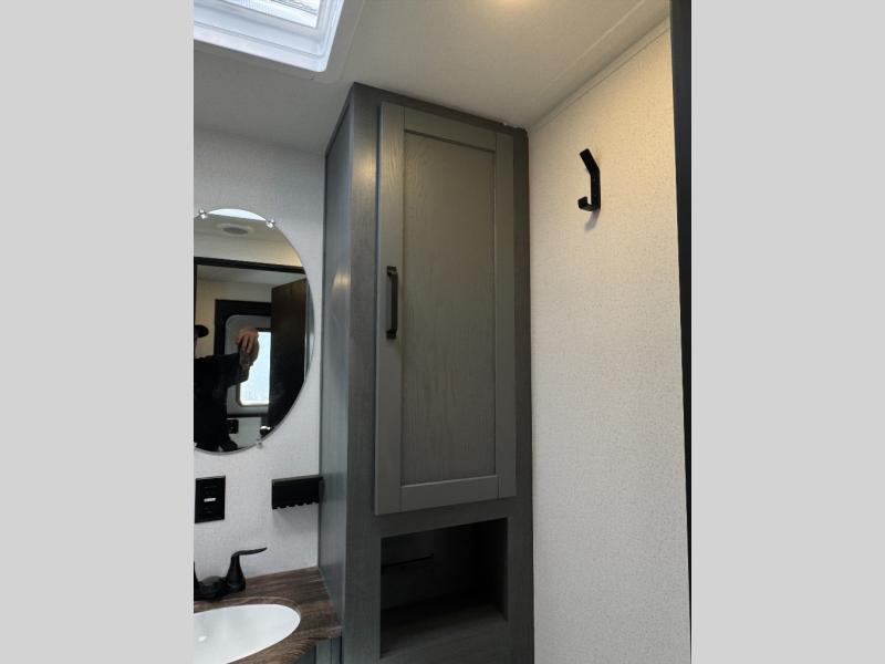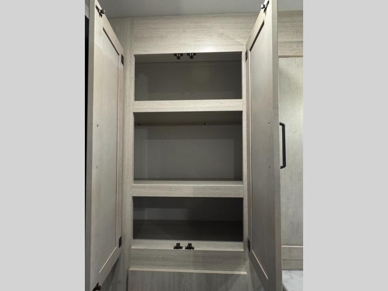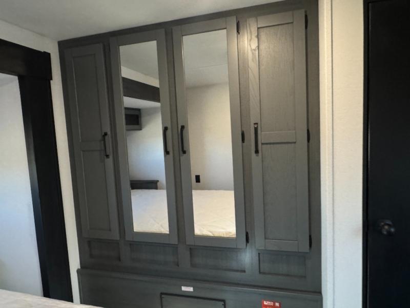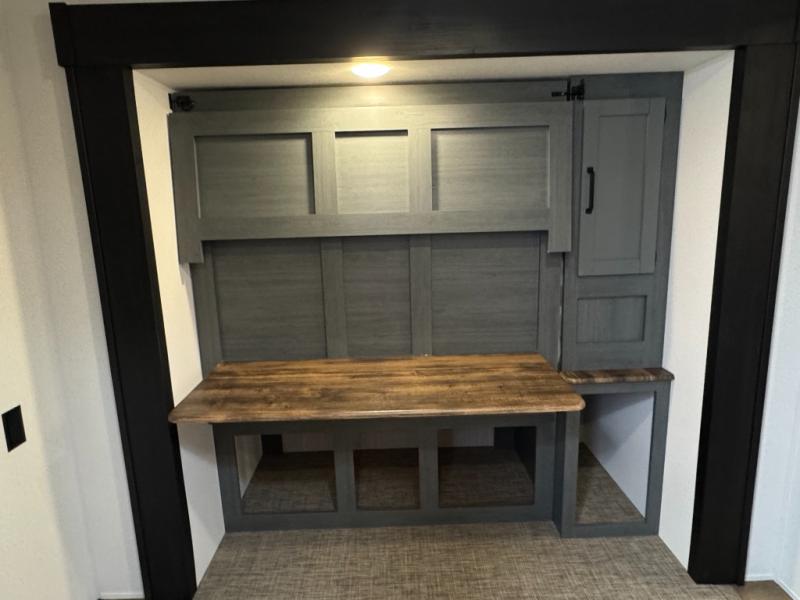 If you enjoy camping with friends or family, this travel trailer will be perfect for you! There are two bedrooms with queen bed slide outs and storage space, plus the rear bedroom includes its own full bath for added comfort. A bunkhouse suite option is also available if you choose the jiffy sofa with a bunk in place of the queen bed in the rear bedroom. Everyone can meet in the combined kitchen and living area that includes a counter peninsula, a spacious pantry, all the kitchen appliances to cook meals, plus a table with chairs and bench seating. There is also a sofa with overhead storage for more seating and sleeping space. Don't let this impressive travel trailer slip away!