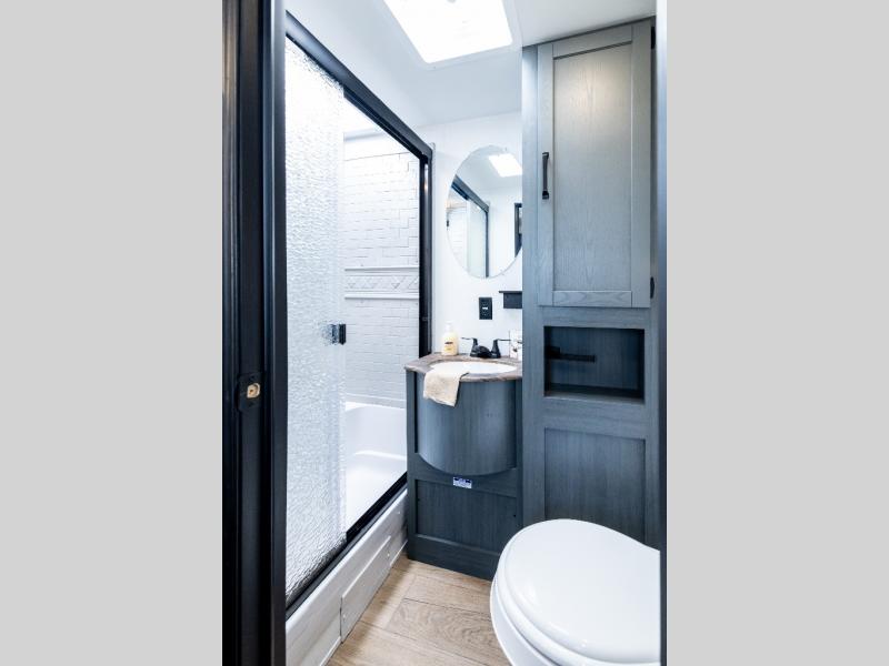 If you enjoy camping with friends or family, this travel trailer will be perfect for you! There are two bedrooms with queen bed slide outs and storage space, plus the rear bedroom includes its own full bath for added comfort. A bunkhouse suite option is also available if you choose the jiffy sofa with a bunk in place of the queen bed in the rear bedroom. Everyone can meet in the combined kitchen and living area that includes a counter peninsula, a spacious pantry, all the kitchen appliances to cook meals, plus a table with chairs and bench seating. There is also a sofa with overhead storage for more seating and sleeping space. Don't let this impressive travel trailer slip away!