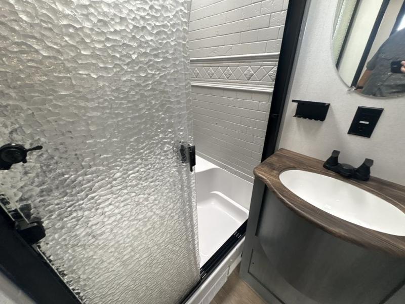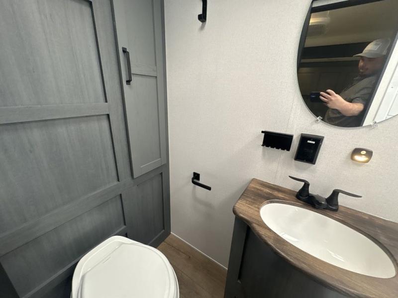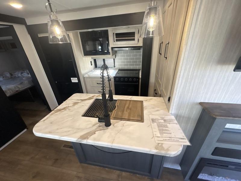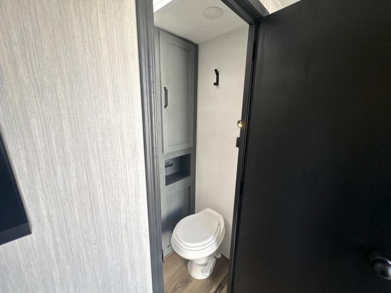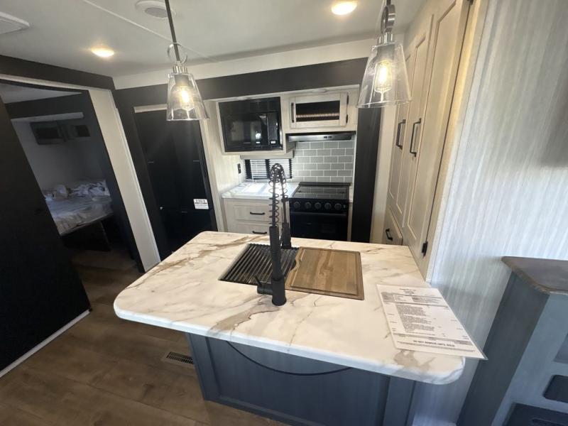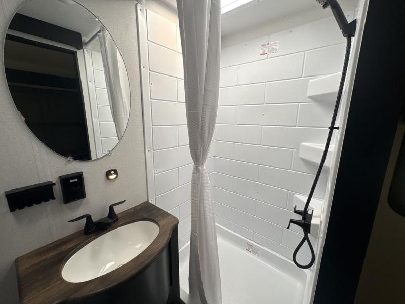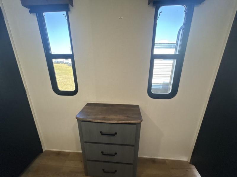 If you enjoy camping with friends or family, this travel trailer will be perfect for you! There are two bedrooms with queen bed slide outs and storage space, plus the rear bedroom includes its own full bath for added comfort. A bunkhouse suite option is also available if you choose the jiffy sofa with a bunk in place of the queen bed in the rear bedroom. Everyone can meet in the combined kitchen and living area that includes a counter peninsula, a spacious pantry, all the kitchen appliances to cook meals, plus a table with chairs and bench seating. There is also a sofa with overhead storage for more seating and sleeping space. Don't let this impressive travel trailer slip away!