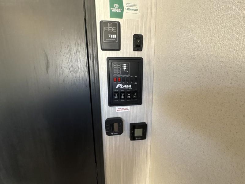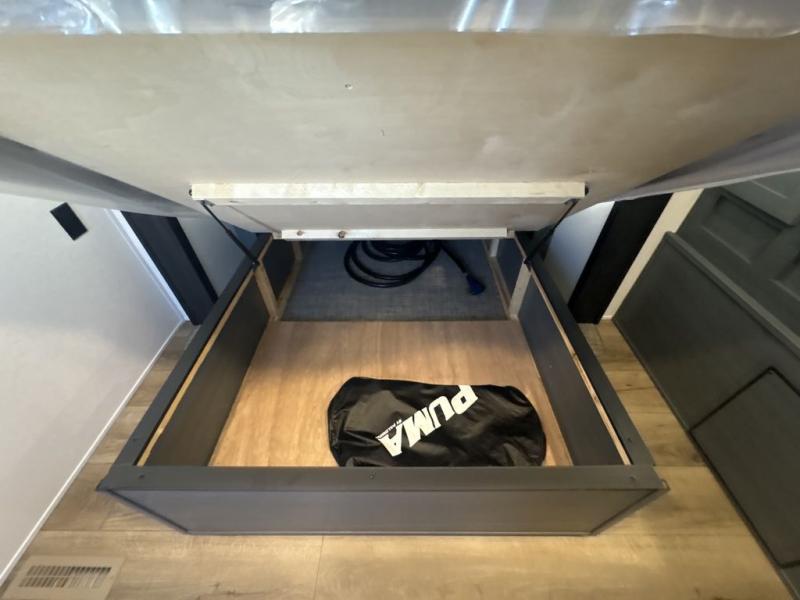 If you're looking for family-fun adventures, then you need one of these Forest River Puma travel trailers! They are built rugged, easy to tow, and jam packed with features. The Darco wrapped underbelly will help protect your unit, and the roof and side mount solar prep gives you the option to add off-grid power. Inside, the Congoleum linoleum will be easy to keep clean, and the night roller shades will provide privacy when it's time to turn in. You'll also enjoy an electric awning with an LED light strip plus an AM/FM/Bluetooth stereo and two outside speakers to keep the party going!