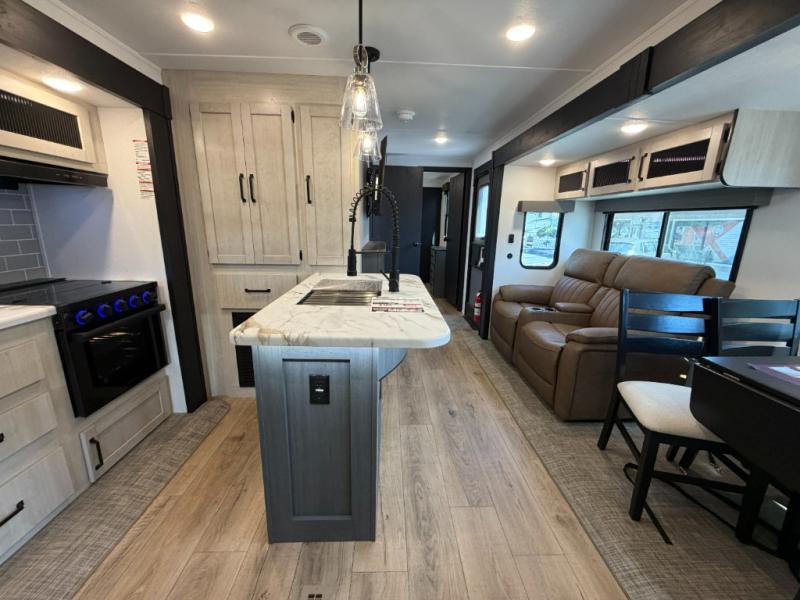 This Puma 340DB stands out with its rare dual-bedroom and two full bath layout, making it perfect for large families or group camping. The open living space, residential-style kitchen, and flexible sleeping arrangements create a comfortable home away from home. With three A/C units and a tankless water heater, you’ll stay cool and comfortable wherever your adventures take you.