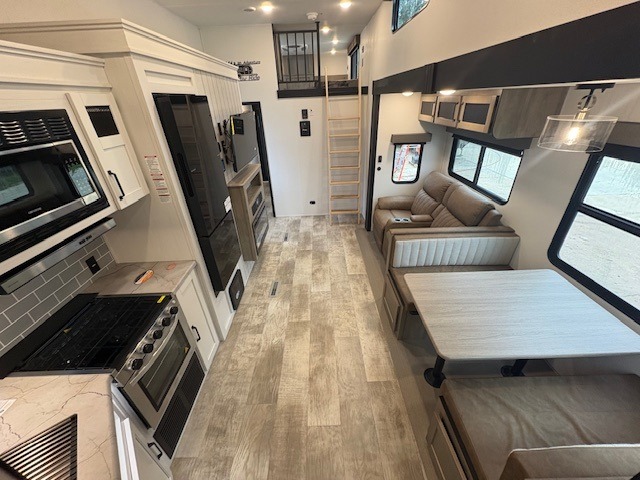 If you're looking for family-fun adventures then you need one of these Palomino Puma fifth wheels or travel trailers! They are built rugged, easy to tow, and jam packed with features. The Darco wrapped underbelly will protect your units vitals and the AlphaPly roofing membrane covers it. They also have new aluminum wheels and a powder coated steel I-beam frame. Inside, the Congoleum linoleum will be easy to keep clean, and the night roller shades will provide privacy when it's time to turn in. You'll also enjoy an electric awning with an LED light strip plus an AM/FM/Bluetooth stereo and two outside speakers to keep the party going!