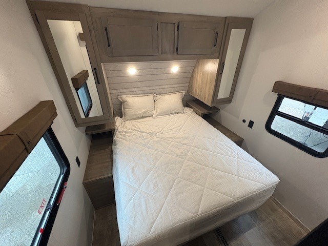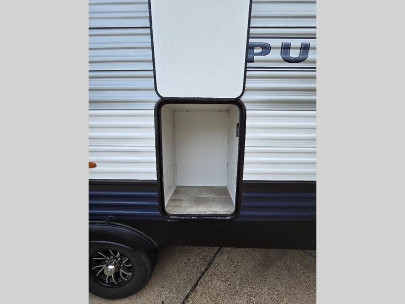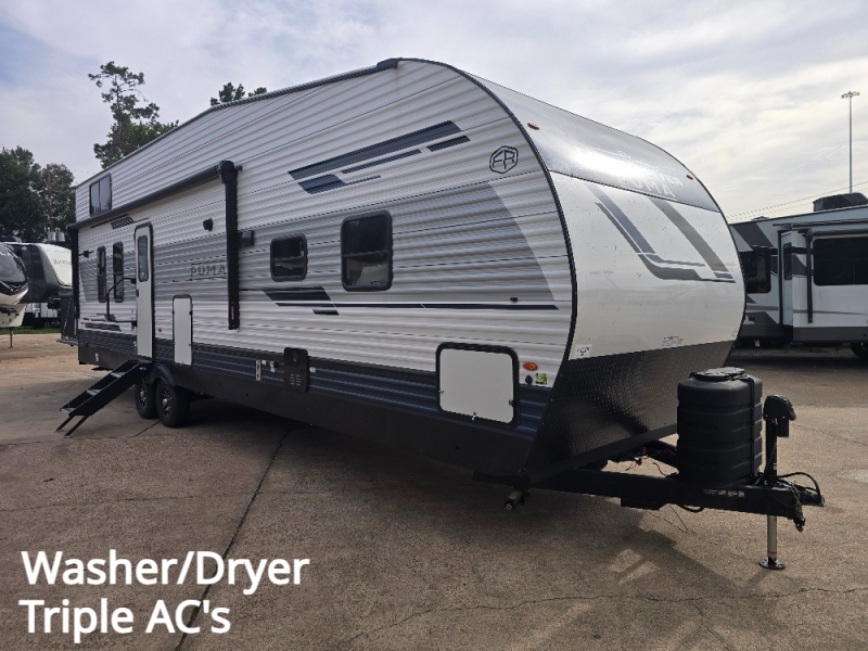 The ultimate travel trailer is found in this Puma! There is ample space to move about thanks to the large slide out and dual entry doors, plus there is a rear patio where you can entertain guests and relax in your camp chairs! The full bath includes a large linen closet to keep bath necessities stocked, and above this room is where you'll find the loft with two bunk mats. The loft looks out on the main living area and kitchen, where you can relax on the sofa, play a game at the booth dinette, and make dinner in the full kitchen. And a front private bedroom provides you with your own space at night!