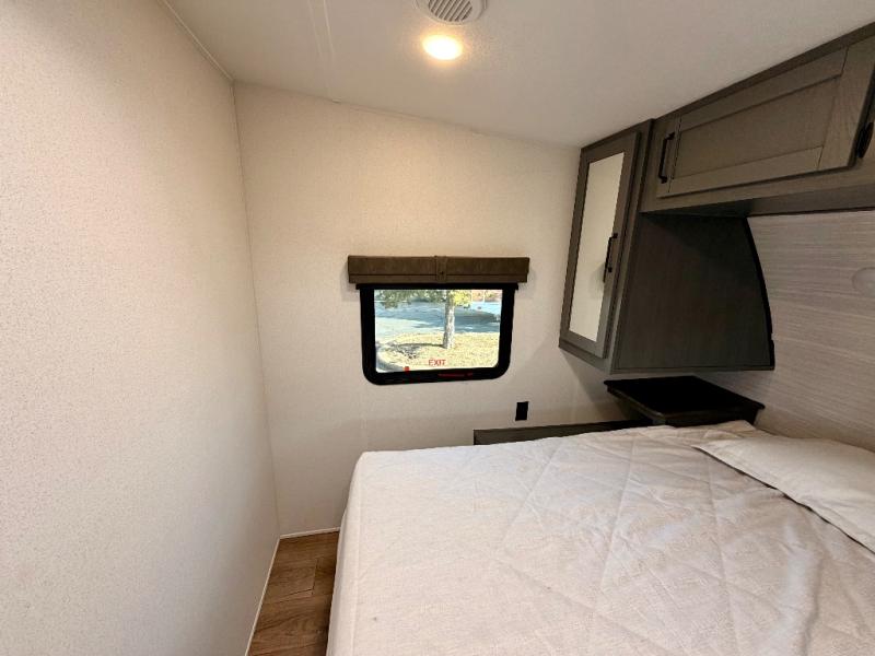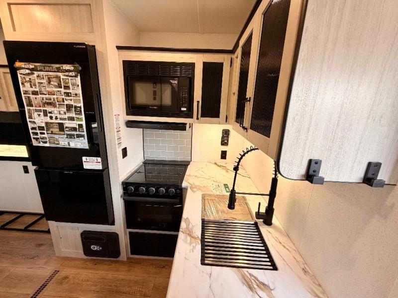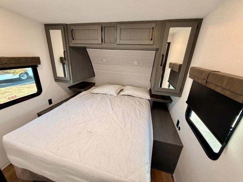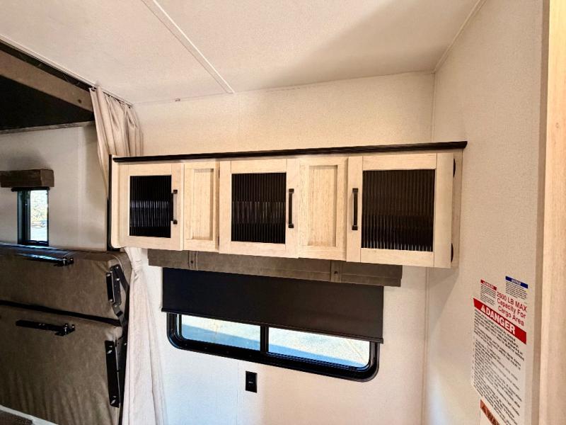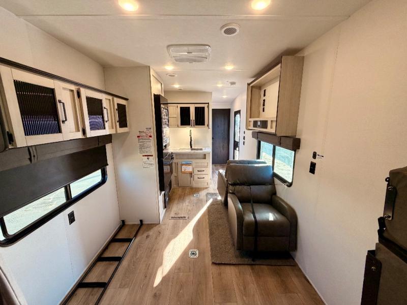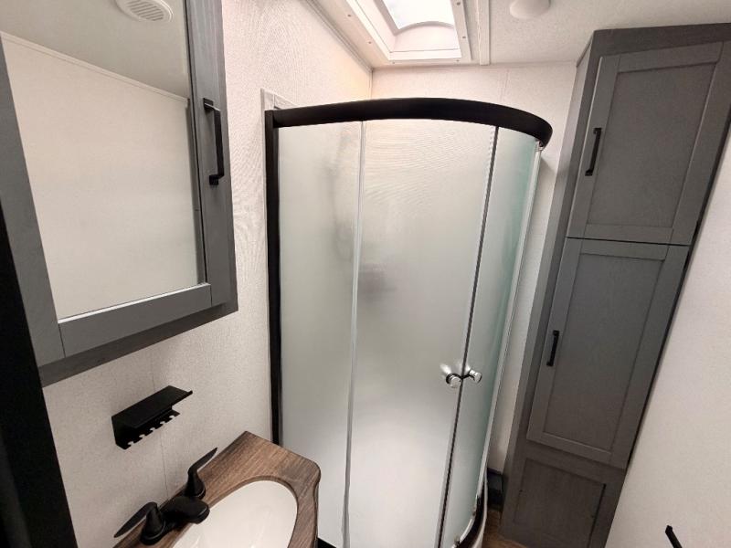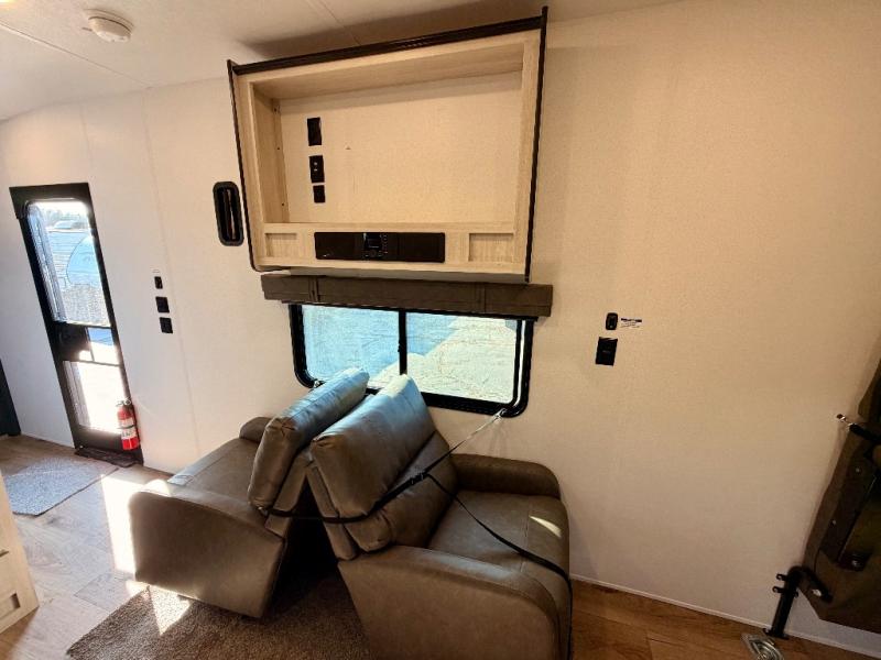 If space for toys is what you want, space is what you'll get in this toy hauler! There is an 11' garage with 15' 10" total garage space when you use the tie-downs in the kitchen, making it easy to haul motorcycles, ATVs, or extra gear. Your crew can get comfortable on the rollover sleeper sofas or on the dual lounge chairs after a long day of riding or exploring. The full bath with a 34" x 34" radius shower will let everyone stay clean and refreshed, and the front private bedroom will feel just like home with its RV queen bed and dual shirt closets for added storage. If you need additional sleeping space for guests, you can add the optional queen bed electric lift in the garage, creating a flexible setup for family and friends.