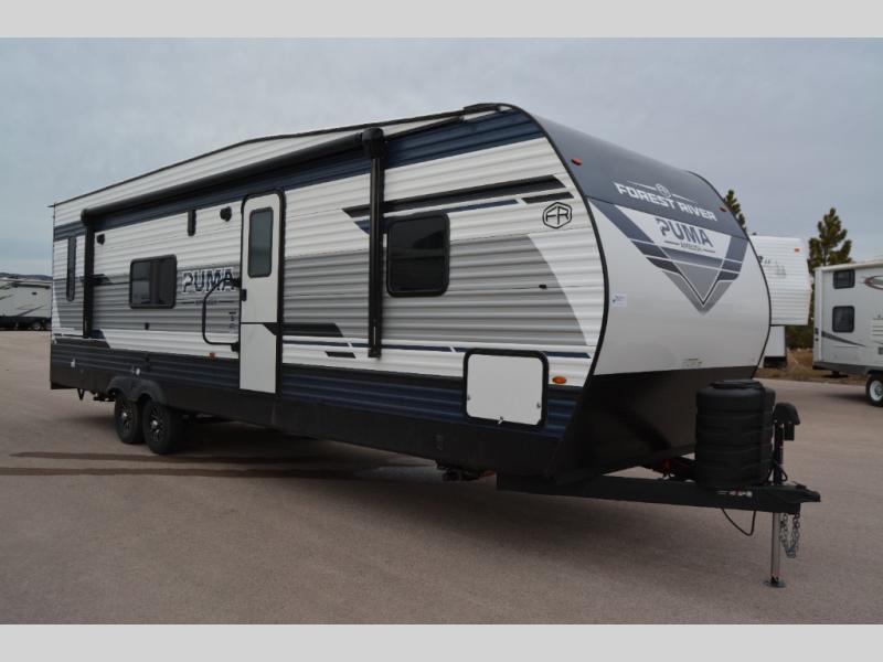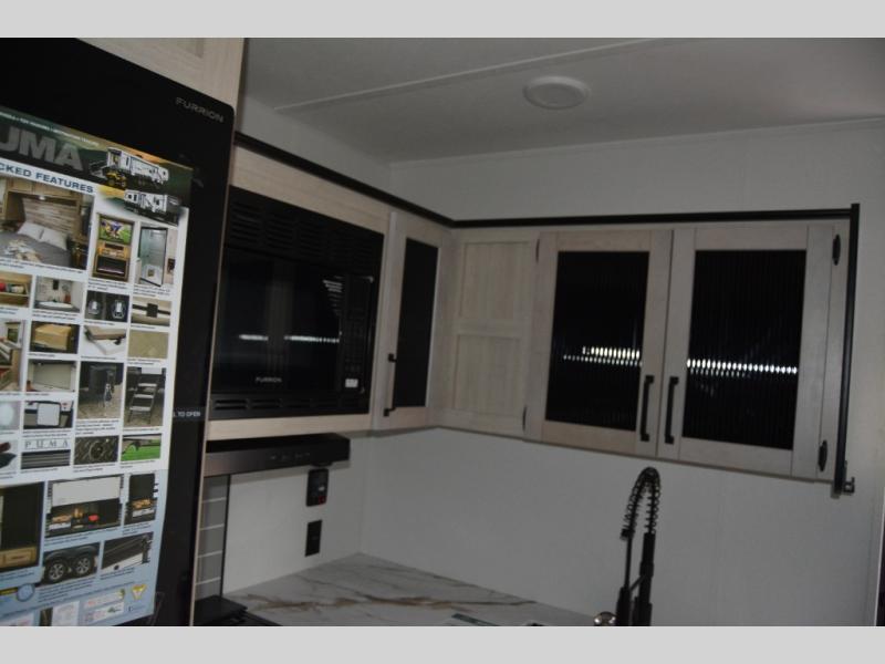 Each Puma Ambush toy hauler travel trailer by Forest River is constructed with a durable tub surround, super lube axles for smooth towing, and a rugged front diamond plate. You will enjoy premium amenities, including a plush bedspread and pillows, LED lighting, and a bath skylight. Cook like a five-star chef with the 21" oven and range hood and indulge in entertainment with the AM/FM/Bluetooth stereo and outside speakers. Plus, you will love the convenient night roller shades, the outside shower ideal for outdoor enthusiasts, and so much more! Whether hauling motorcycles, ATVs, or gear for your next outdoor escapade, these toy hauler travel trailers are your ultimate adventure companion.