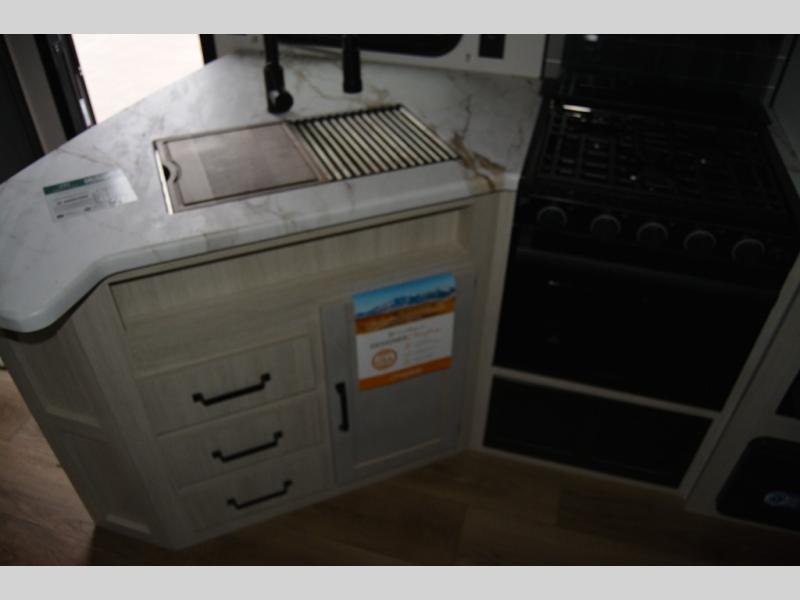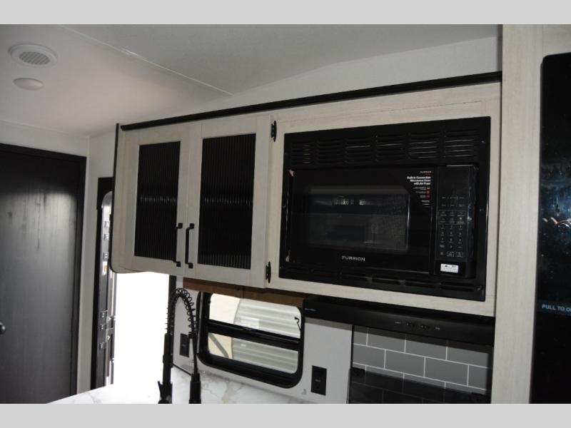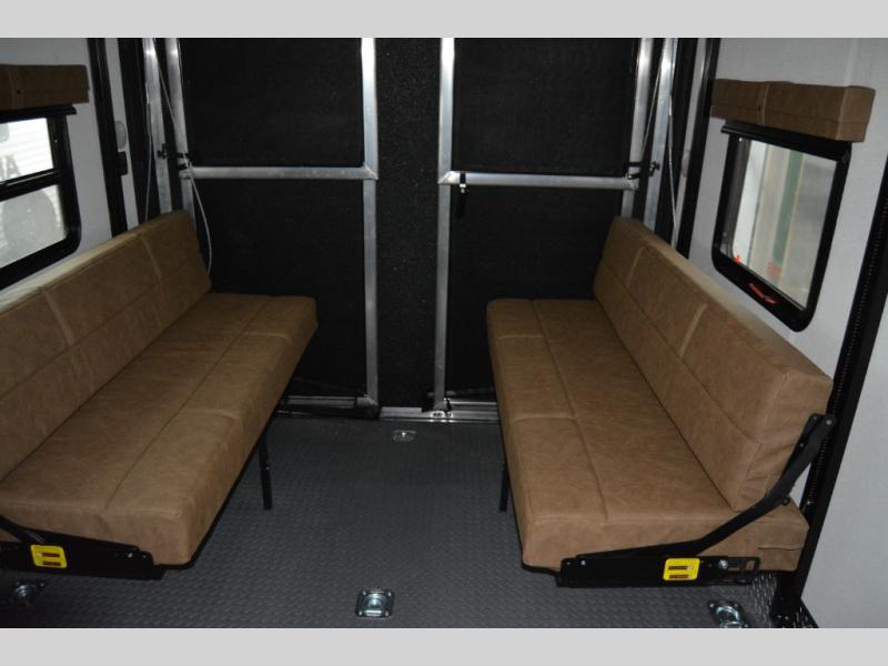 The most spacious toy hauler travel trailer in the Puma Ambush lineup, this unit is ready for adventure when you are! There are dual entry doors, one of which leads to the 13' separate garage. Here, you'll find 62" rollover sofas, an optional queen bed electric lift, plus a 7' 3" ramp door with spring assist for easy unloading. The walk-through bath will be easily accessible for everyone to use, and the main living room is shared with the kitchen so everyone can gather together when dinner is being made. A 21" oven comes standard in the kitchen, along with a stainless-steel convection microwave with an air fryer and an 11-cu. ft. 12V black glass residential style refrigerator. When you're ready for bed, the front private bedroom with an RV queen bed will provide a great night's rest, and there are dual shirt closets to keep your clothes wrinkle-free.