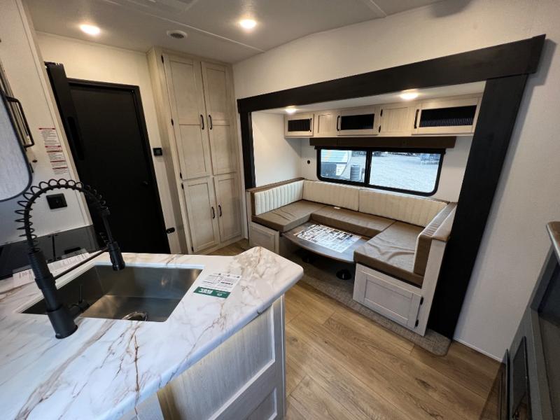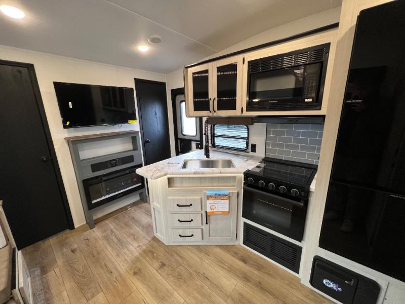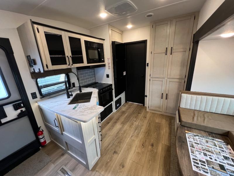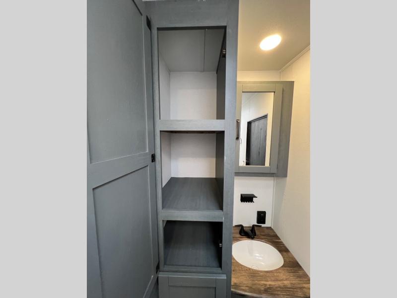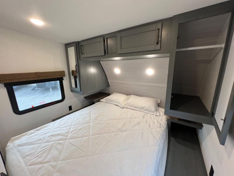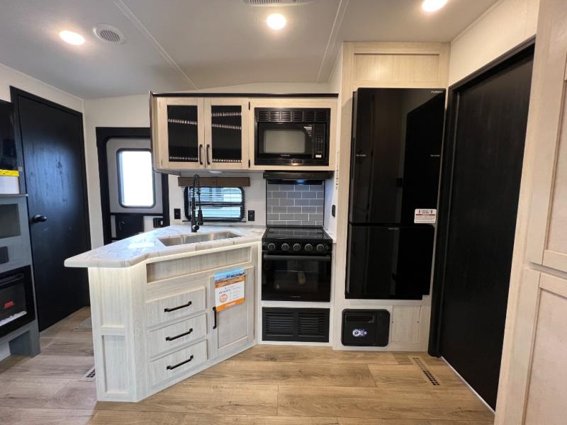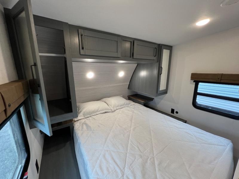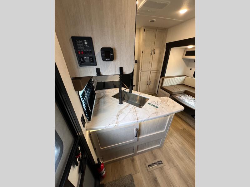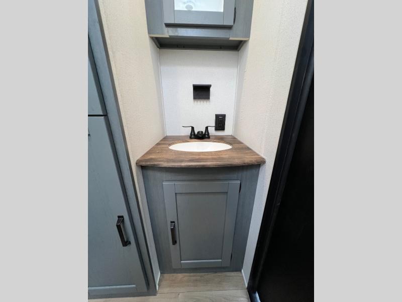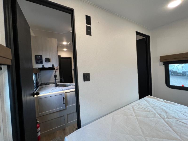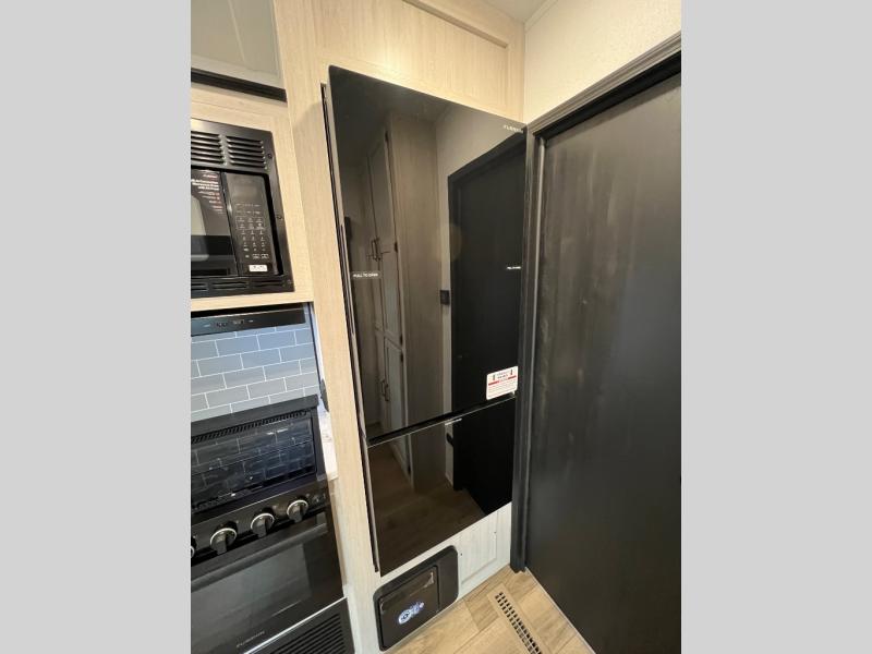 The most spacious toy hauler travel trailer in the Puma Ambush lineup, this unit is ready for adventure when you are! There are dual entry doors, one of which leads to the 13' separate garage. Here, you'll find 62" rollover sofas, an optional queen bed electric lift, plus a 7' 3" ramp door with spring assist for easy unloading. The walk-through bath will be easily accessible for everyone to use, and the main living room is shared with the kitchen so everyone can gather together when dinner is being made. A 21" oven comes standard in the kitchen, along with a stainless-steel convection microwave with an air fryer and an 11-cu. ft. 12V black glass residential style refrigerator. When you're ready for bed, the front private bedroom with an RV queen bed will provide a great night's rest, and there are dual shirt closets to keep your clothes wrinkle-free.