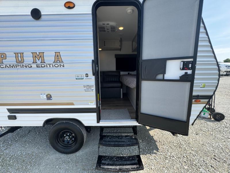 The Puma Camping Edition by Palomino offer an affordable travel trailer for rookie campers or seasoned RVers! They are built with 5/8" tongue and groove plywood flooring and a front diamond plate for added protection. There are also exterior clamp style door latches, back up camera prep, and 20 lb. LP bottles. Head inside to find Thermofoil countertops with a smooth drop edge, bedroom USB ports and outlets, and a GE appliance and kitchen package.