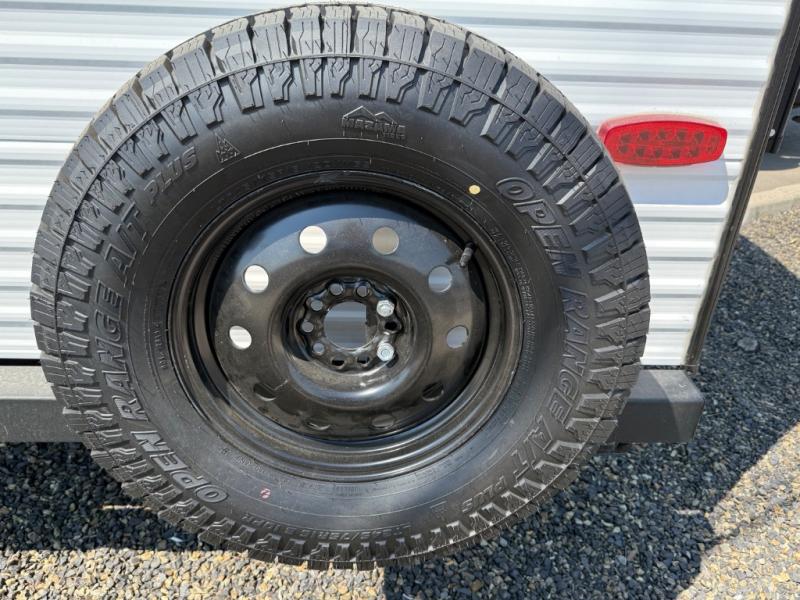 It will be so easy to enjoy camping trips in this single axle travel trailer! There is an RV queen bed up front with flip-up storage at the foot of the bed for your belongings, and any additional guests can sleep on the sofa. A full kitchen includes a stainless two burner cooktop and stainless microwave to cook meals each day, and the 4.3 cu. ft. 12V black glass refrigerator will keep your food fresh. And a private bath with a toilet and shower will let you freshen up without having to use the camp's facilities!