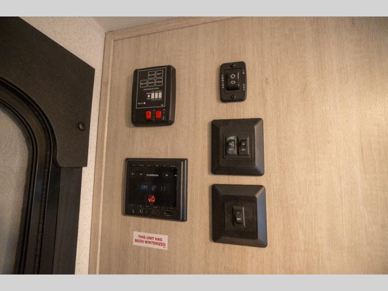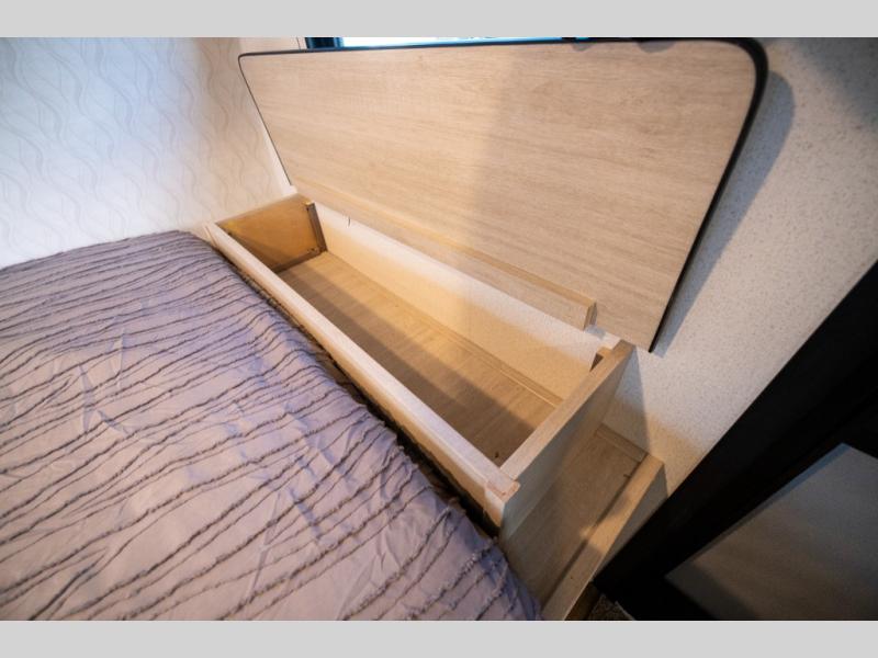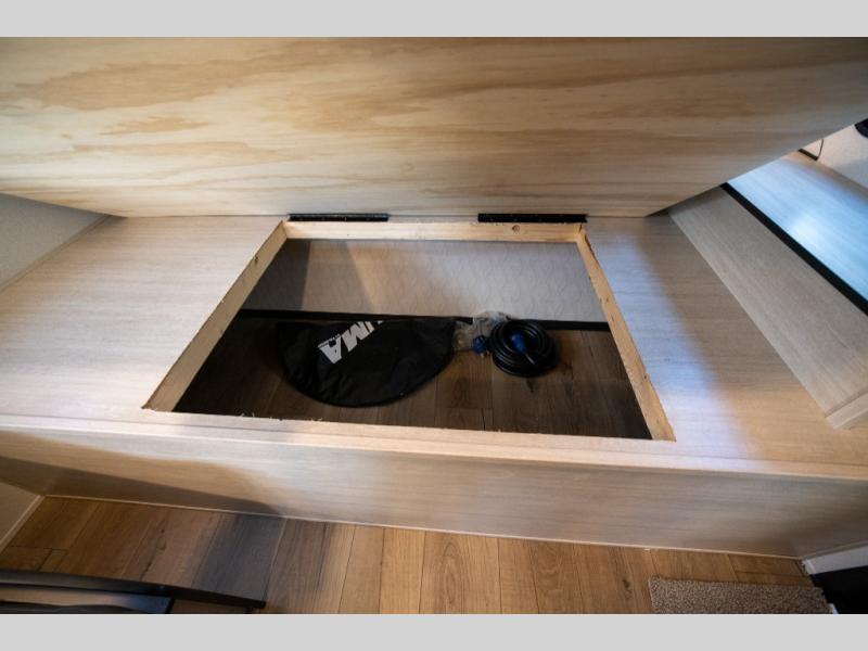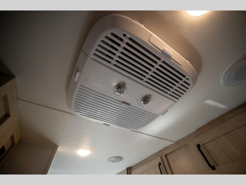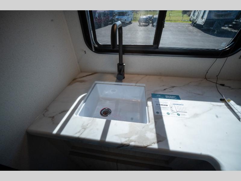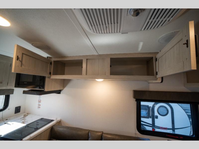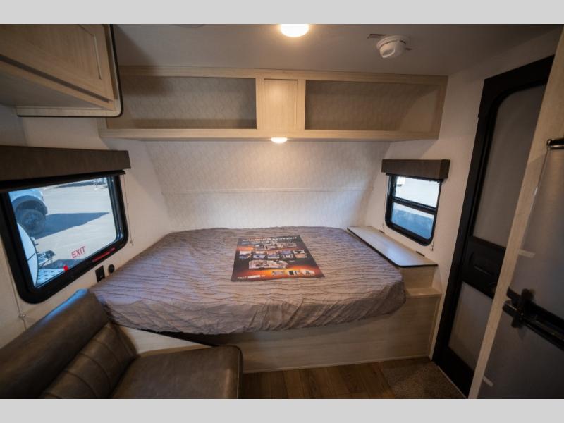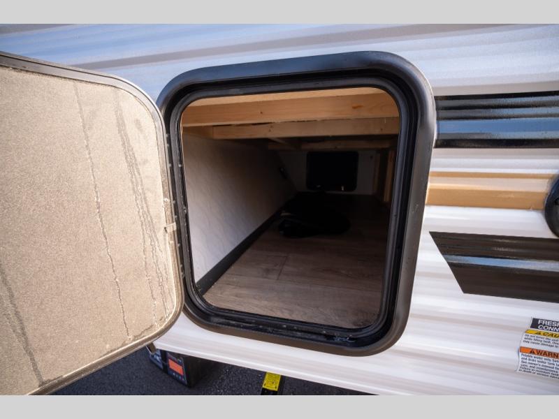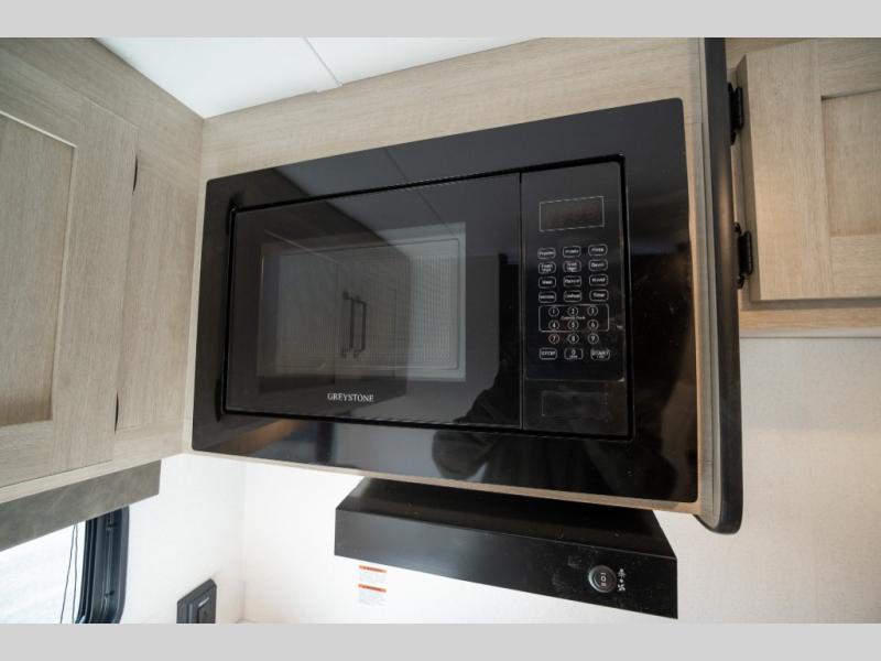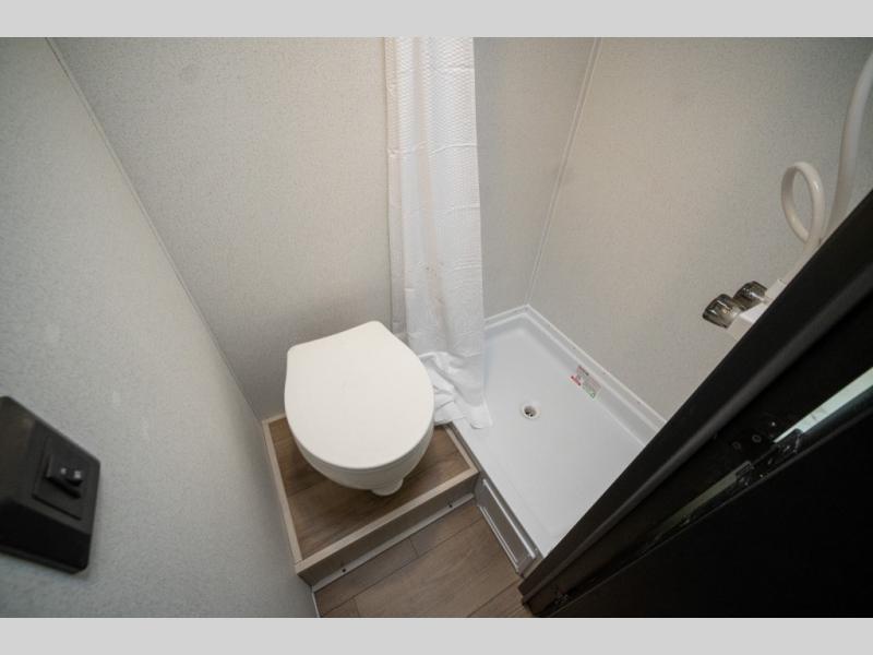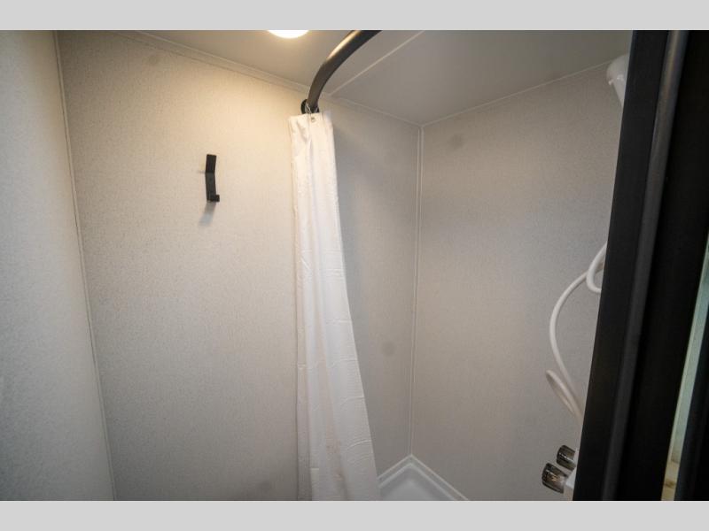 It will be so easy to enjoy camping trips in this single axle travel trailer! There is an RV queen bed up front with flip-up storage at the foot of the bed for your belongings, and any additional guests can sleep on the sofa. A full kitchen includes a two-burner cooktop and microwave to cook meals each day, and the 12V black glass refrigerator will keep your food fresh. And a private bath with a toilet and shower will let you freshen up without having to use the camp's facilities!