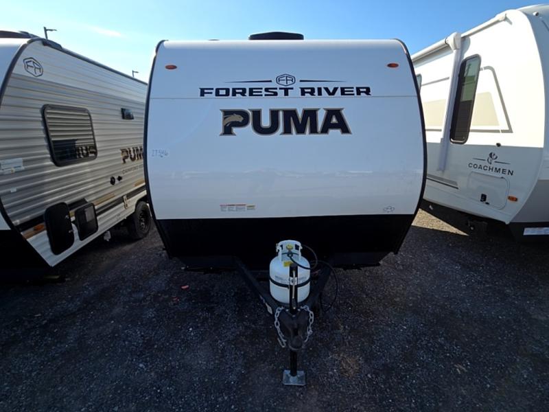 The Puma Camping Edition by Forest River offer an affordable travel trailer for rookie campers or seasoned RVers! They are built with 5/8" tongue and groove plywood flooring and a front diamond plate for added protection. There are also exterior magnetic baggage door latches, back up camera prep, a battery disconnect. Head inside to find Thermofoil countertops with a smooth drop edge, bedroom USB ports and outlets, and pleated shades in the living room.