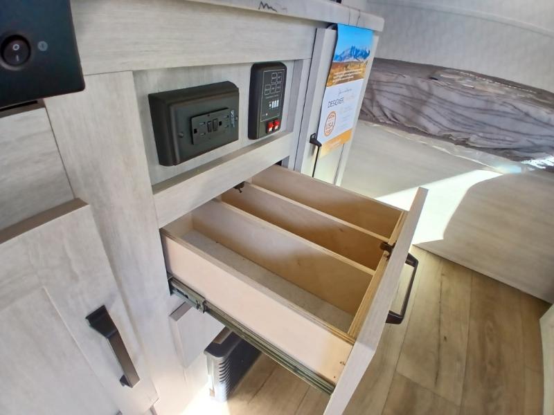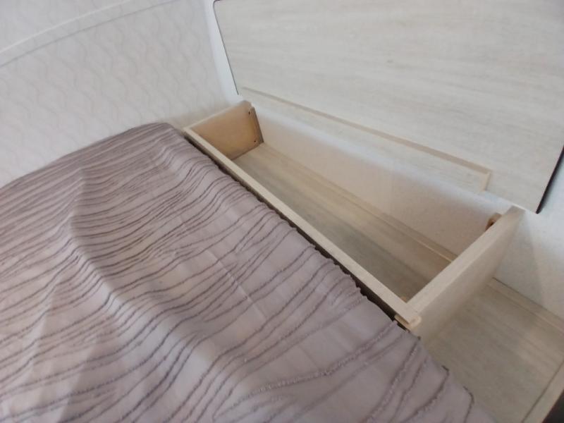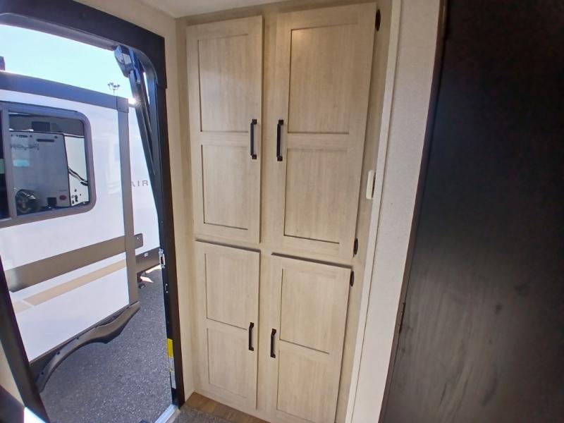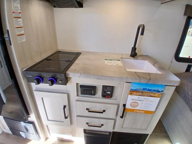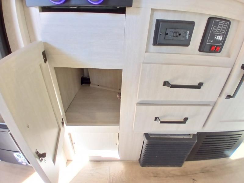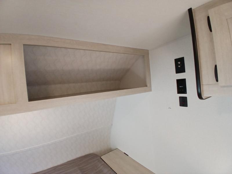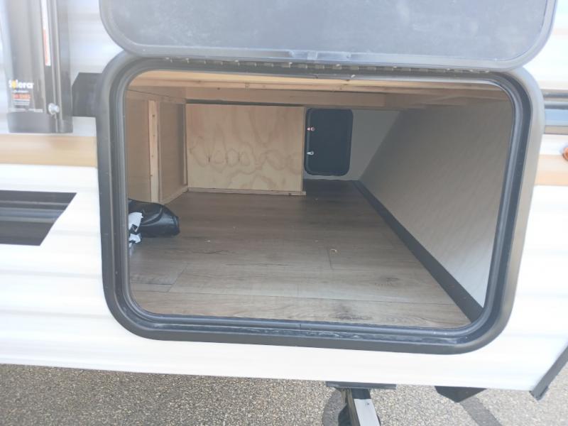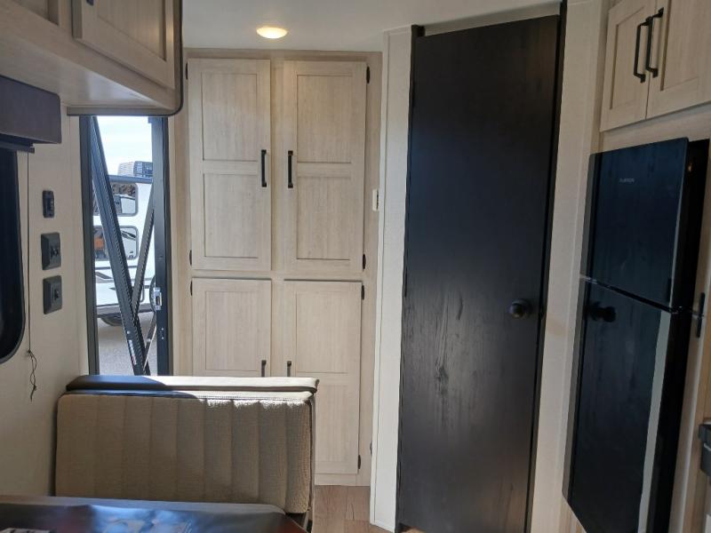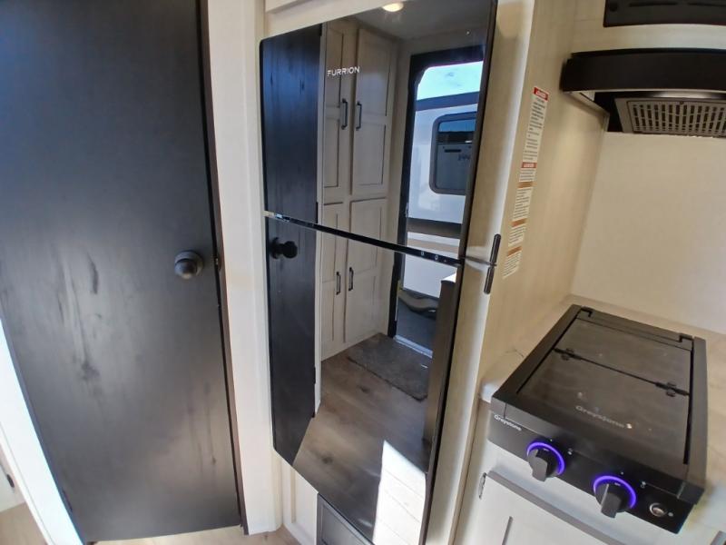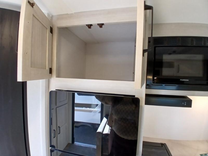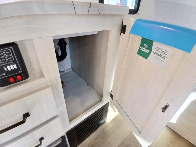 It will be so easy to enjoy camping trips in this single axle travel trailer! There is a front RV queen bed with flip-up storage at the foot of the bed for your belongings, and an additional guest or two little ones can sleep on the booth dinette when it's not being used to dine at. A full kitchen includes a stainless two burner cooktop and stainless microwave to cook meals each day, and the 4.3 cu. ft. 12V black glass refrigerator will keep your food fresh. And a private bath with a toilet and shower will let you freshen up without having to use the camp's facilities!