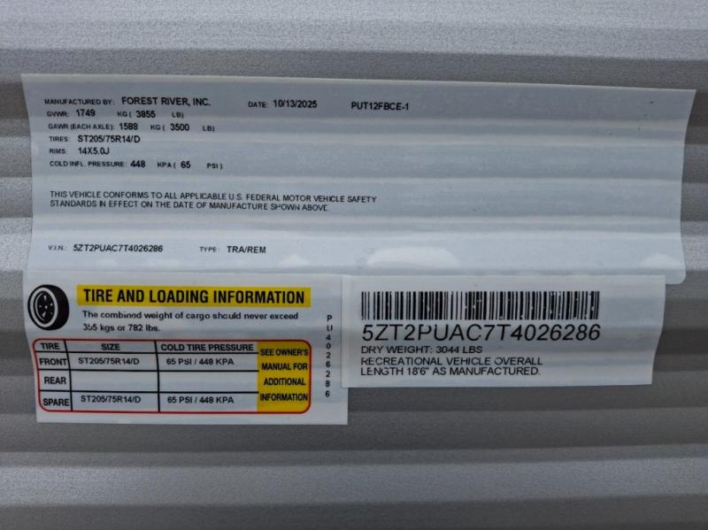 New 2026 Forest River RV Puma Camping Edition 12FBCE Travel Trailer
