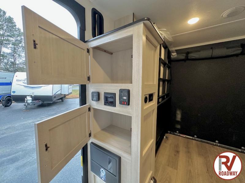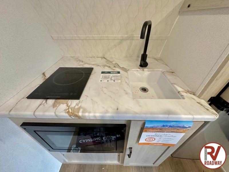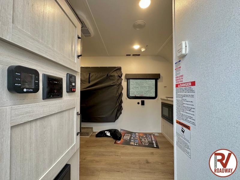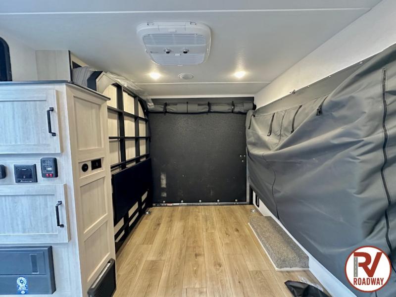 The outdoor enthusiast has met their match with this lightweight toy hauler. Once you've unloaded your bikes or kayaks using the ramp door, you can take a rest on the 54" x 74" Murphy bed, make lunch in the front corner kitchen, or freshen up in the 23" x 38" shower combo! And an optional fold-out tent bed is available if you're needing additional sleeping space!