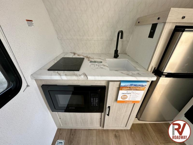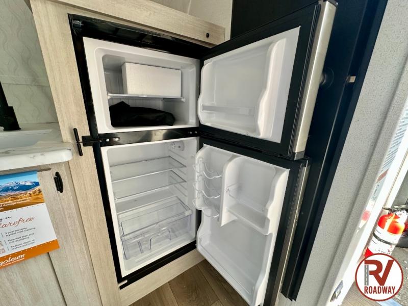 The outdoor enthusiast has met their match with this lightweight toy hauler. Once you've unloaded your bikes or kayaks using the ramp door, you can take a rest on the 54" x 74" Murphy bed, make lunch in the front corner kitchen, or freshen up in the 23" x 38" shower combo! And an optional fold-out tent bed is available if you're needing additional sleeping space!