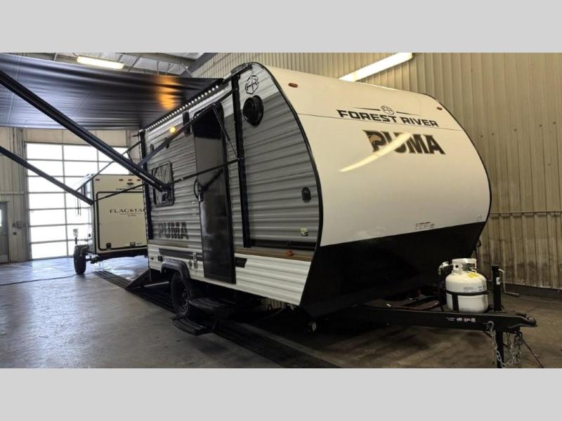 The Puma Camping Edition by Palomino offer an affordable toy hauler for rookie campers or seasoned RVers! They are built with 5/8" tongue and groove plywood flooring and a front diamond plate for added protection. There are also exterior magnetic baggage door latches, back up camera prep, a battery disconnect. Head inside to find Thermofoil countertops with a smooth drop edge, bedroom USB ports and outlets, and pleated shades in the living room.