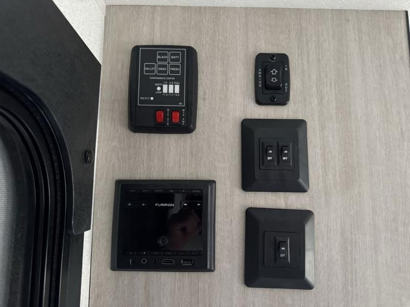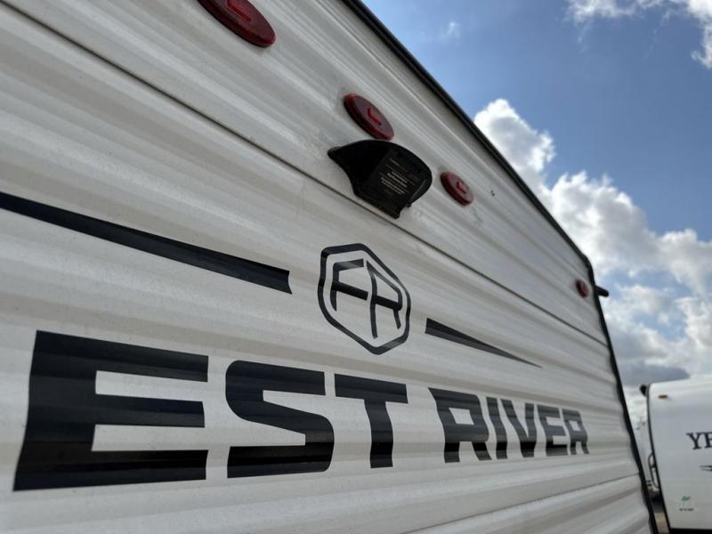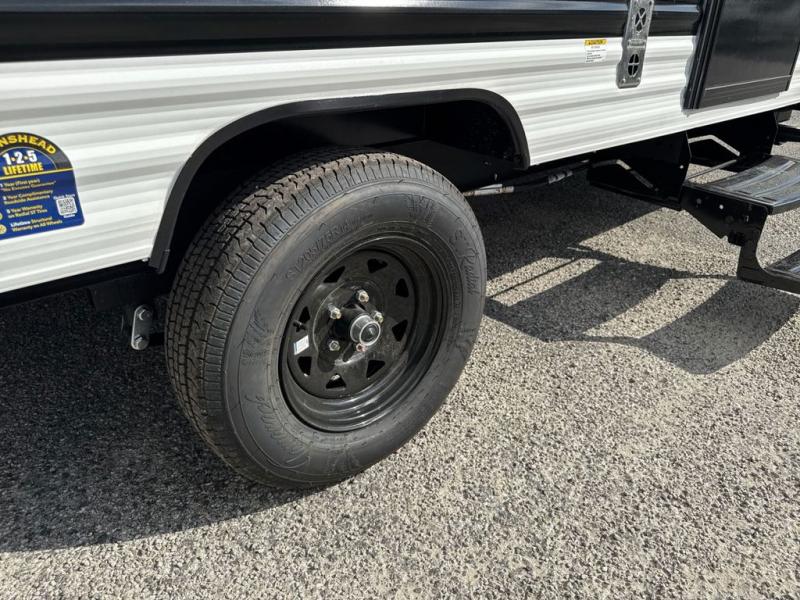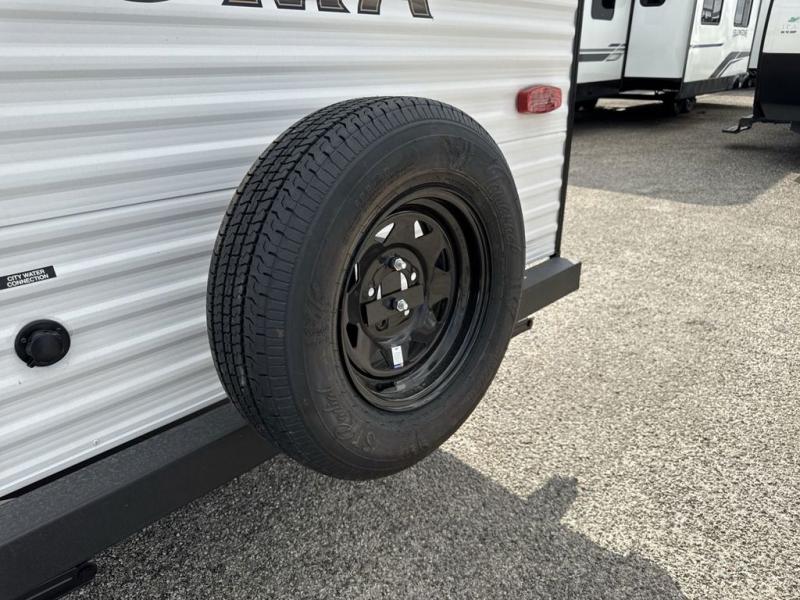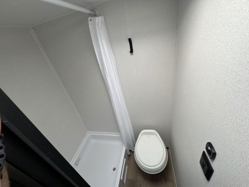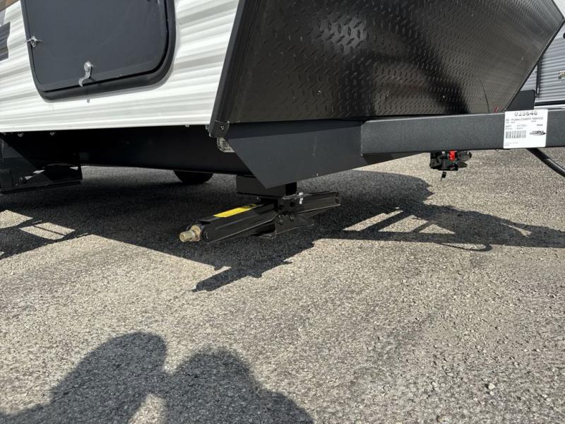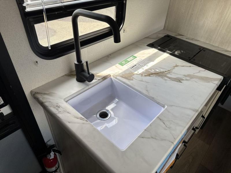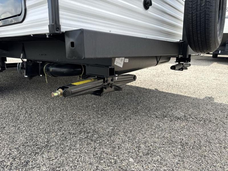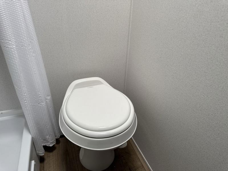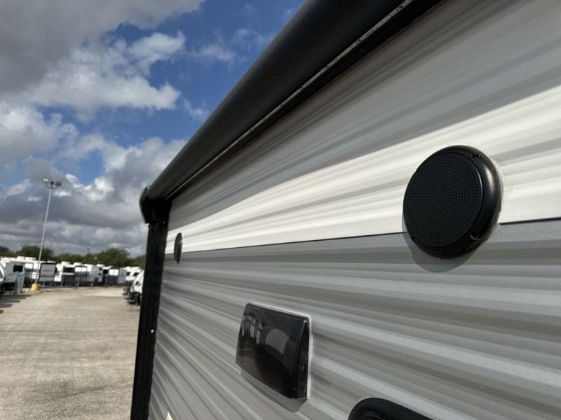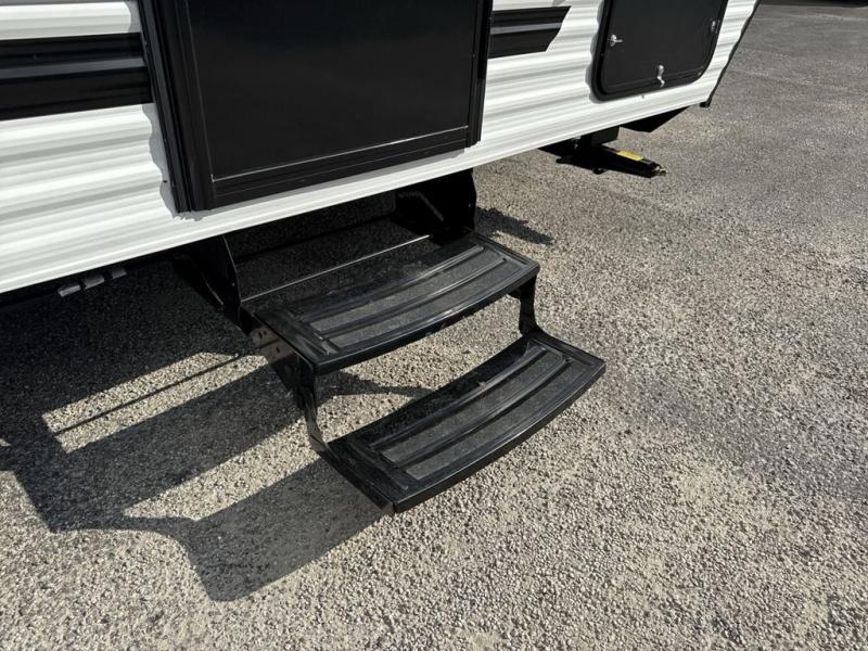 It will be so easy to enjoy camping trips in this single axle travel trailer! There is a front RV queen bed with flip-up storage at the foot of the bed for your belongings, and any additional guests can sleep on the bunk beds and sofa. A full kitchen includes a stainless two burner cooktop and stainless microwave to cook meals each day, and the 4.3 cu. ft. 12V black glass refrigerator will keep your food fresh. And a private bath with a toilet and shower will let you freshen up without having to use the camp's facilities!