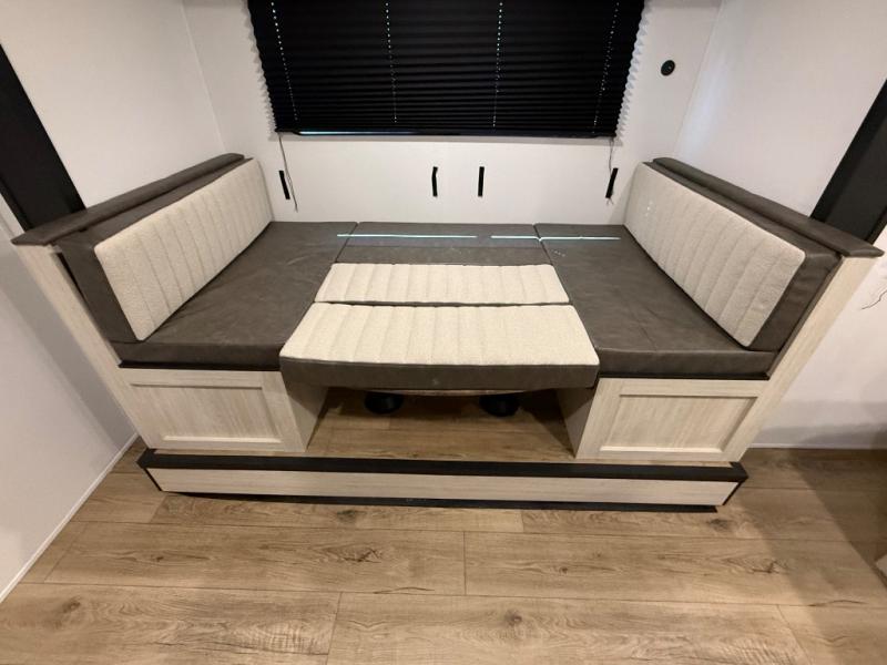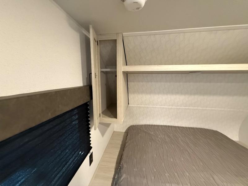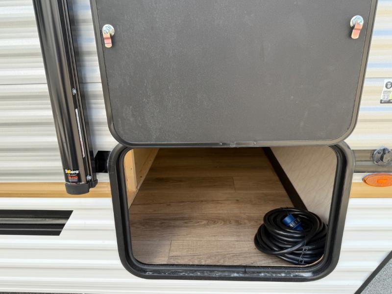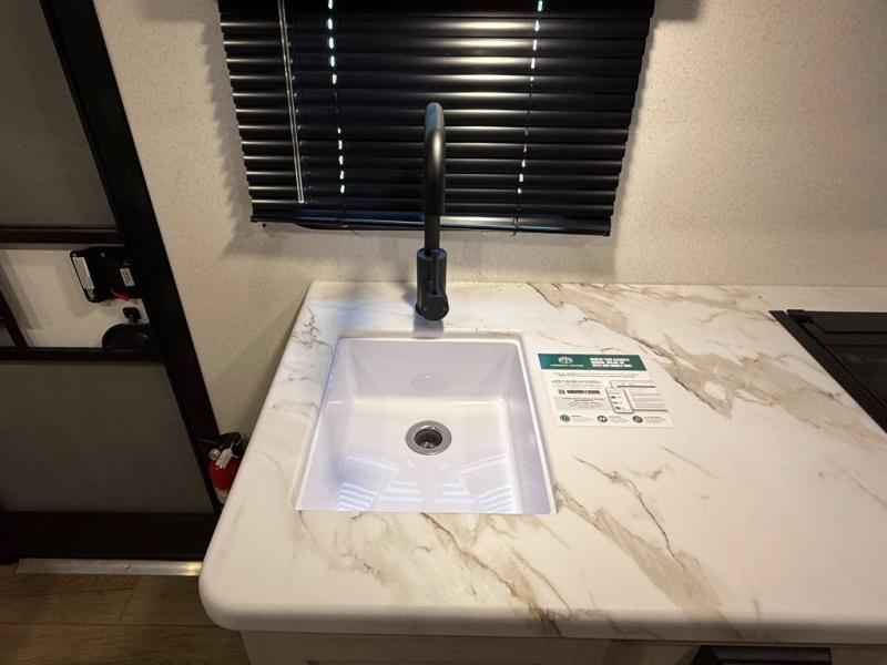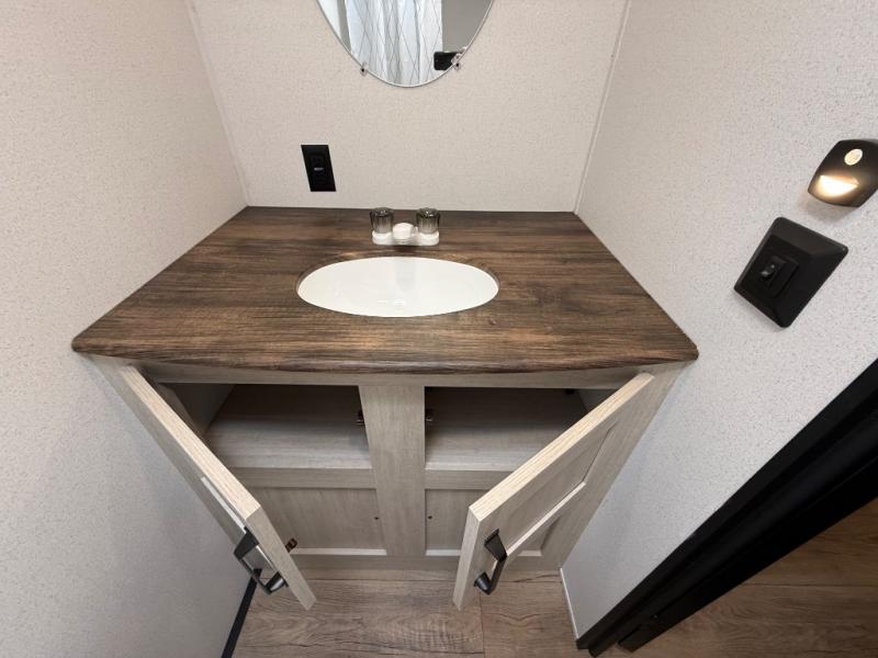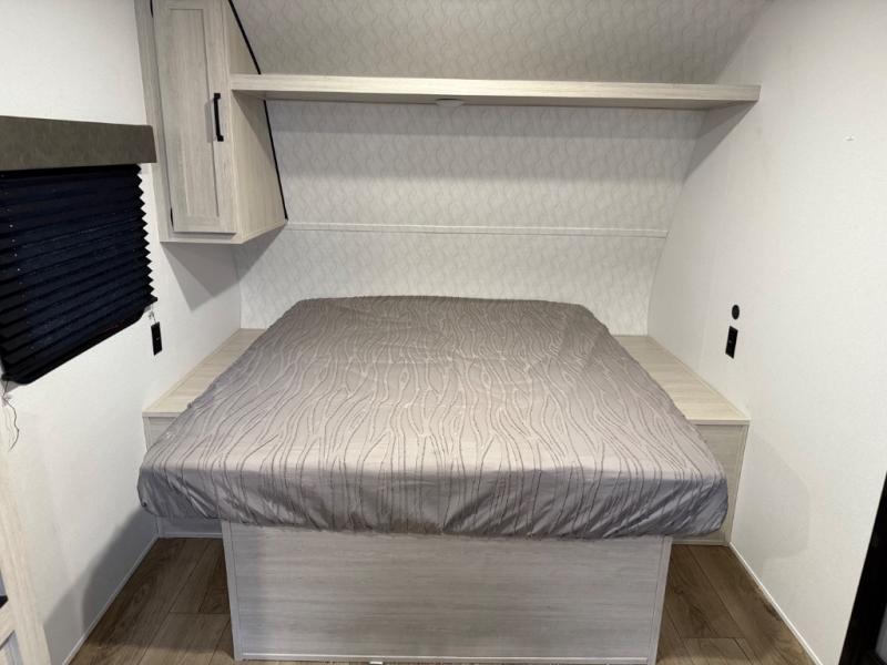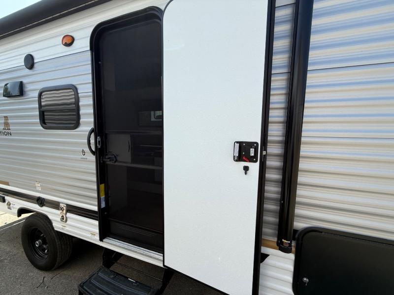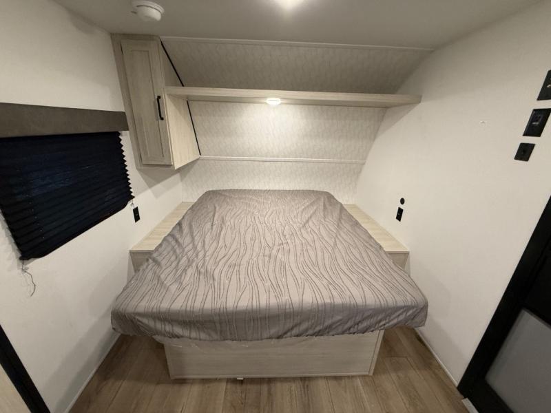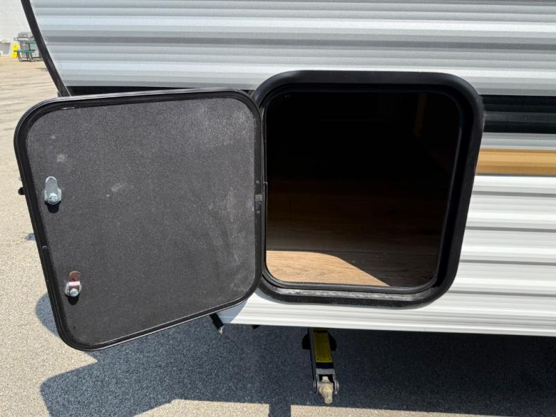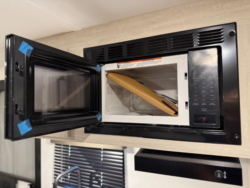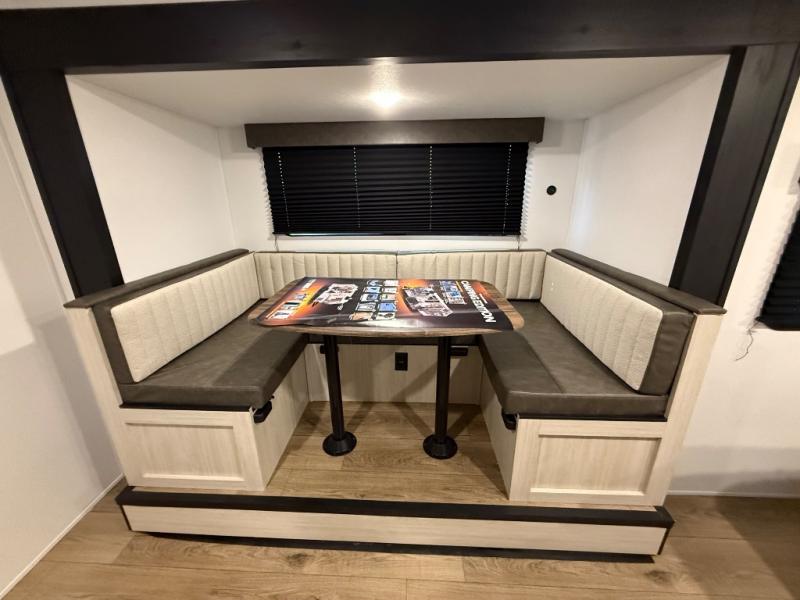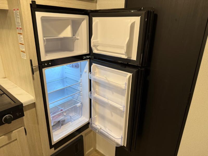 This travel trailer includes everything you need for camping trips at the lake. You'll sleep great each night on the front RV queen bed, or you can choose the optional Murphy bed with a sofa if you need more seating space during the day. The chef of your group can make meals on the two burner cooktop or in the microwave oven, then you can dine around the U-shaped dinette slide. A full rear bath includes a 36" x 30" shower, a toilet, vanity, plus a medicine cabinet to keep your things organized.