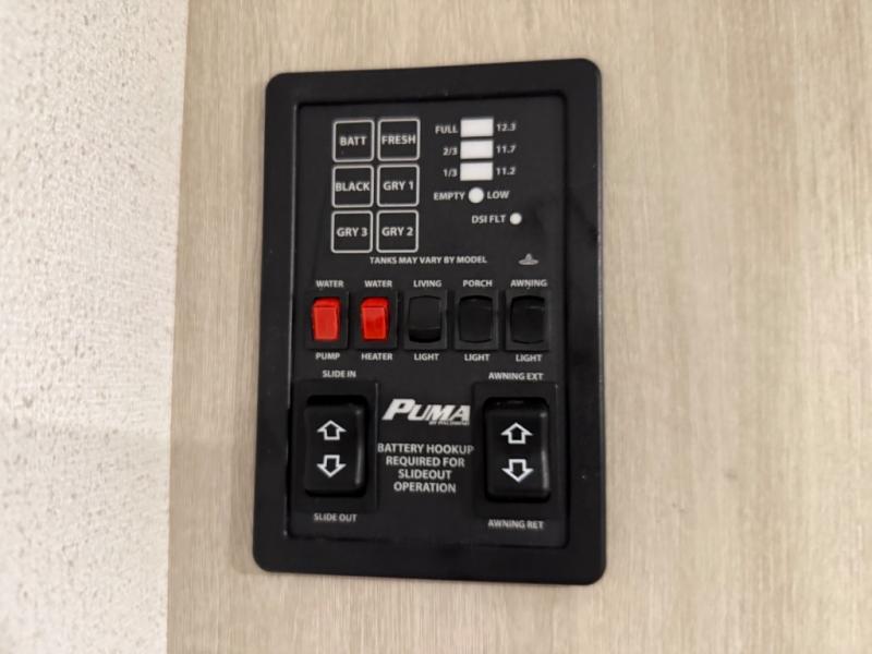 The Puma Camping Edition by Palomino offer an affordable travel trailer for rookie campers or seasoned RVers! They are built with 5/8" tongue and groove plywood flooring and a front diamond plate for added protection. There are also exterior clamp style door latches, back up camera prep, and 20 lb. LP bottles. Head inside to find Thermofoil countertops with a smooth drop edge, bedroom USB ports and outlets, and a GE appliance and kitchen package