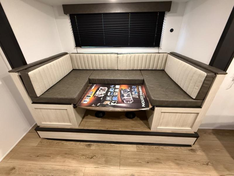 The 2026 Palomino Puma Camping Edition 16DSCE is a compact yet well-appointed travel trailer that balances comfort with easy towing. It’s around 19 feet long and weighs in at about 3,600 pounds—light enough for many SUVs and half-ton trucks. Inside features a front queen bed (with a Murphy bed option for more space), a U-shaped dinette slide for lounging or extra sleeping room, and a full rear bath complete with a roomy shower.