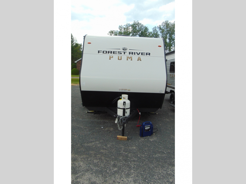 The Puma Camping Edition by Palomino offer an affordable travel trailer for rookie campers or seasoned RVers! They are built with 5/8" tongue and groove plywood flooring and a front diamond plate for added protection. There are also exterior clamp style door latches, back up camera prep, and 20 lb. LP bottles. Head inside to find Thermofoil countertops with a smooth drop edge, bedroom USB ports and outlets, and a GE appliance and kitchen package.