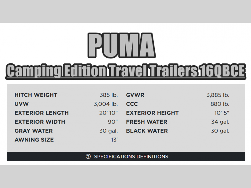 Palomino Puma Camping Edition travel trailer 16QBCE highlights: