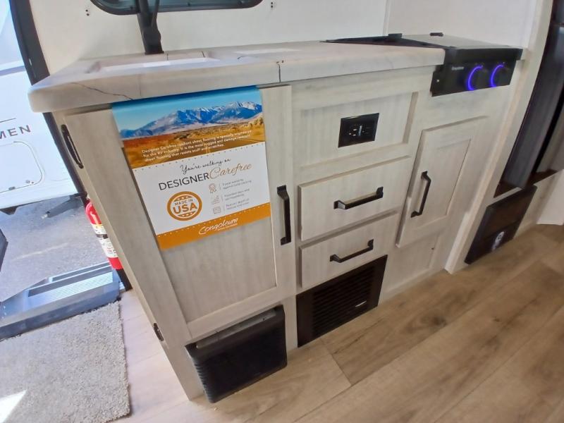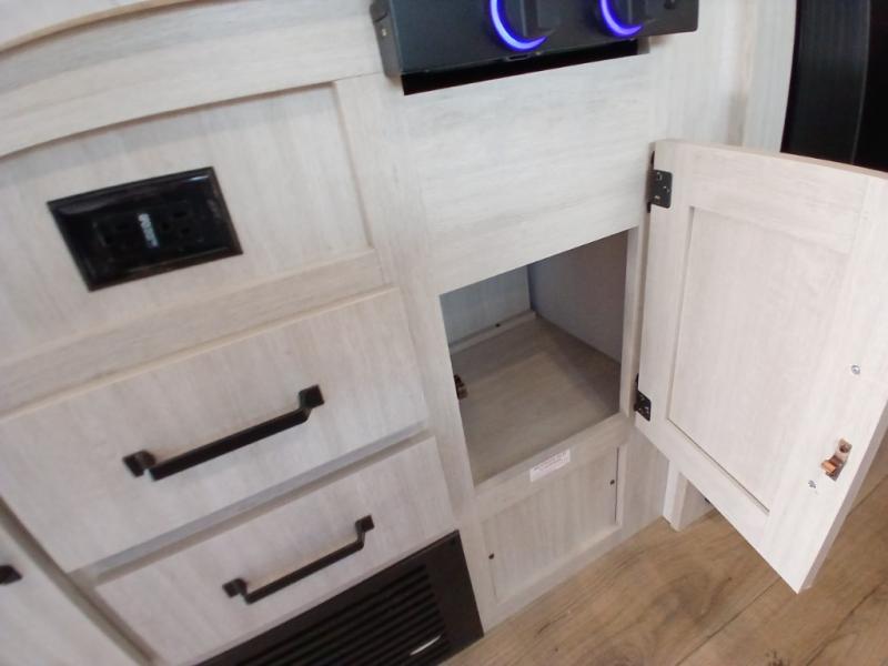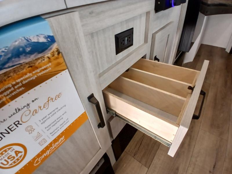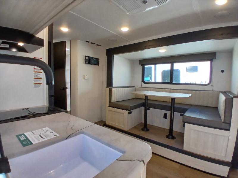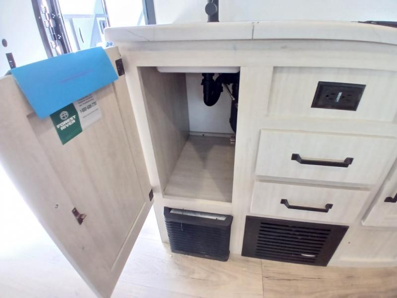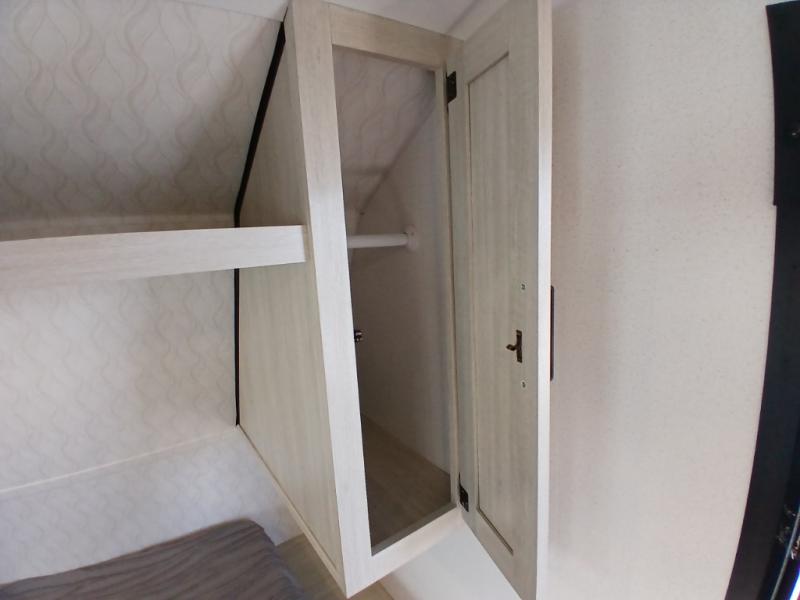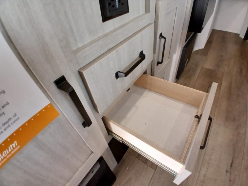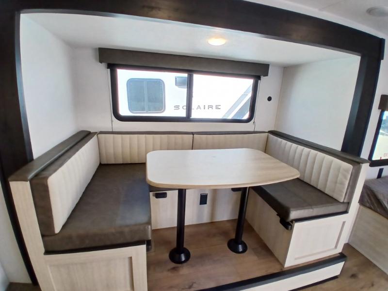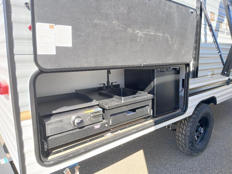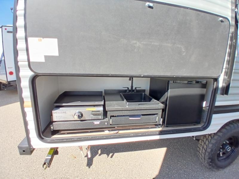 The whole gang will love camping in this travel trailer since there are double-size bunks for compact sleeping spaces and a slide out for more space to relax! The front RV queen bed is sure to provide a great night's rest, and you can choose the optional Murphy bed if you're needing more seating space during the day. Once you've made dinner on the two burner cooktop, you can dine around the U-shaped dinette. And an optional mini kitchen with a griddle is available if you'd rather cook outdoors! This unit includes ample storage space for your things, including exterior storage and storage under the bunks!