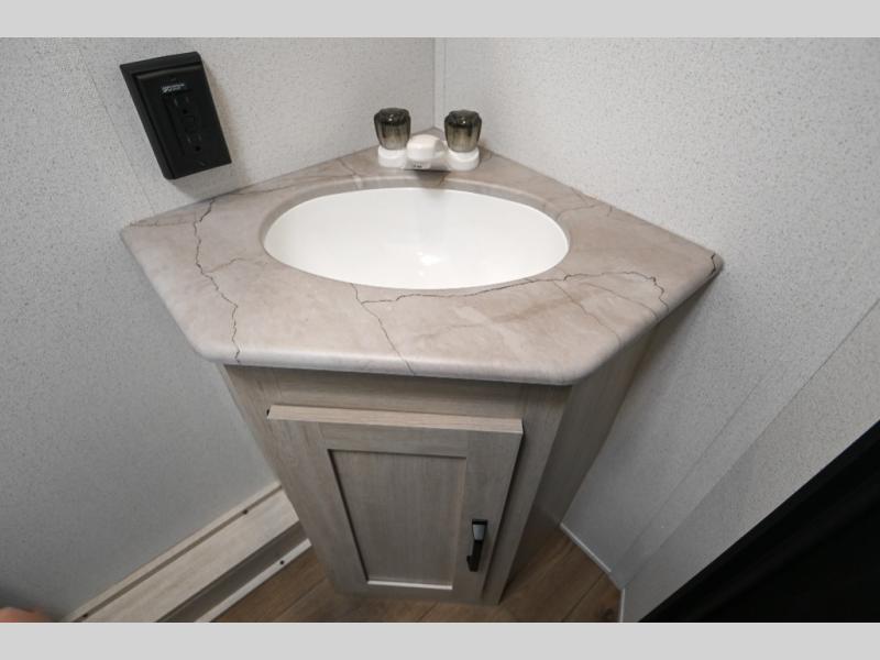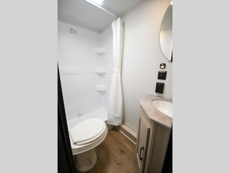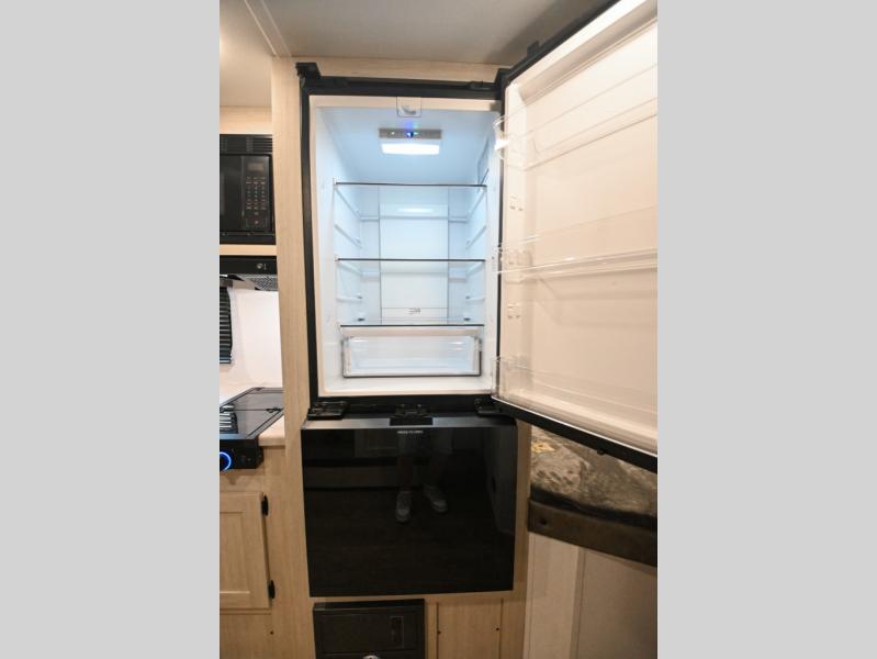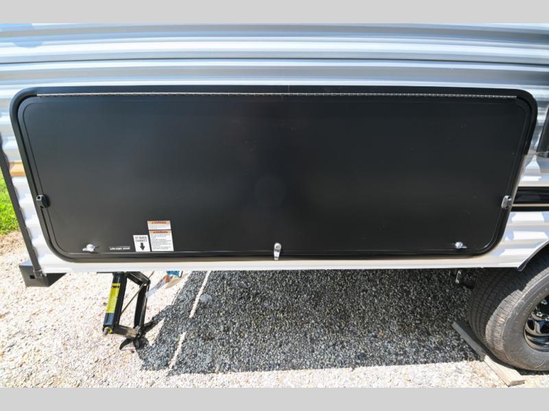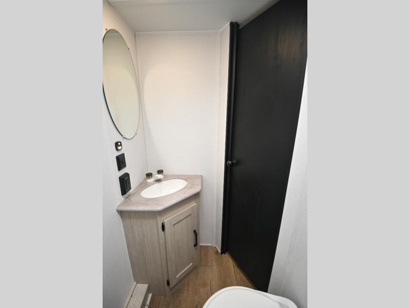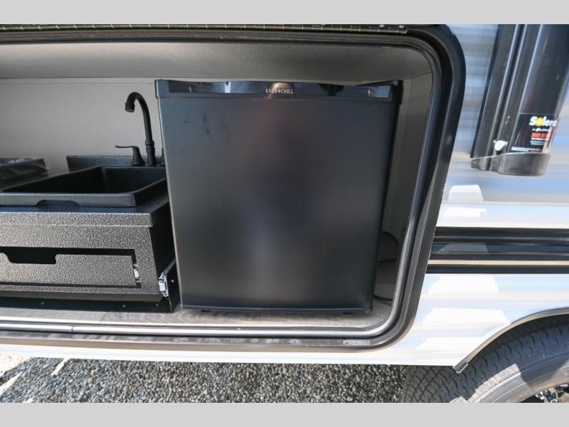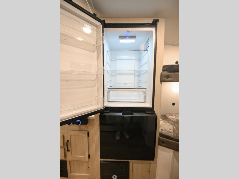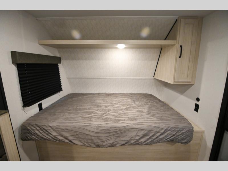 The whole gang will love camping in this travel trailer since there are double-size bunks for compact sleeping spaces and a slide out for more space to relax! The front RV queen bed is sure to provide a great night's rest, and you can choose the optional Murphy bed if you're needing more seating space during the day. Once you've made dinner on the two burner cooktop, you can dine around the U-shaped dinette. And an optional mini kitchen with a griddle is available if you'd rather cook outdoors! This unit includes ample storage space for your things, including exterior storage and storage under the bunks!
