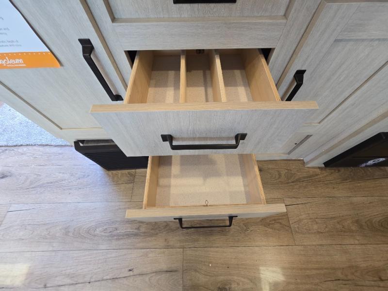 Under-bunk storage, exterior pass-through storage, and various overhead cabinets provide room for all your gear.
