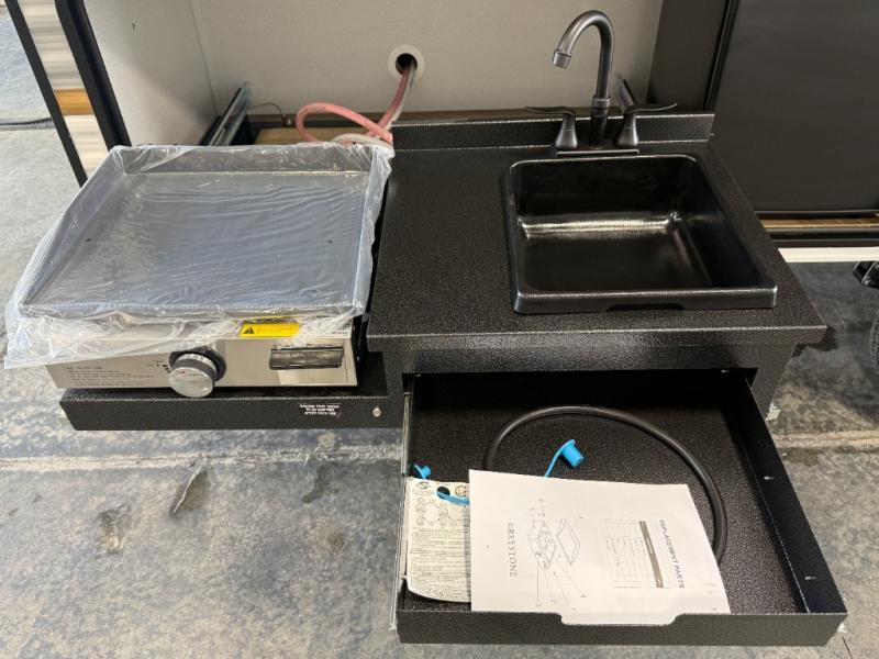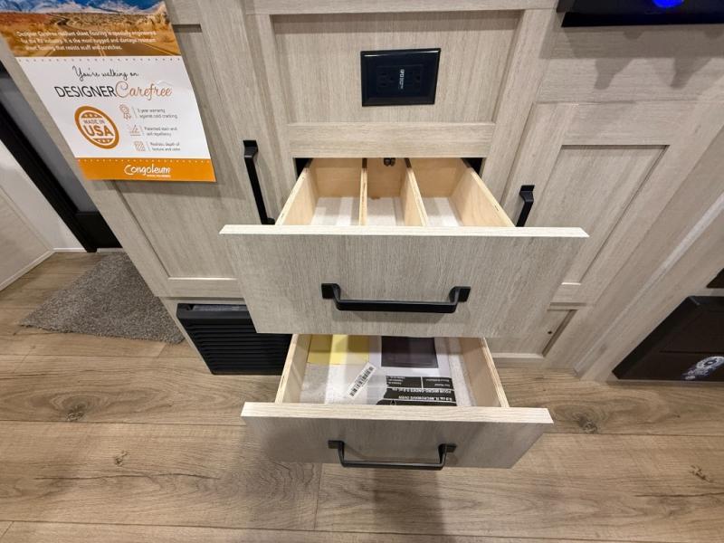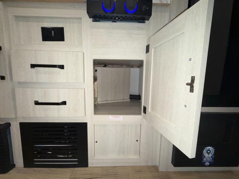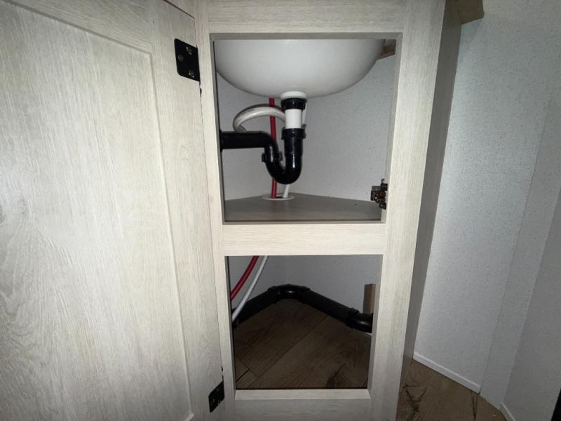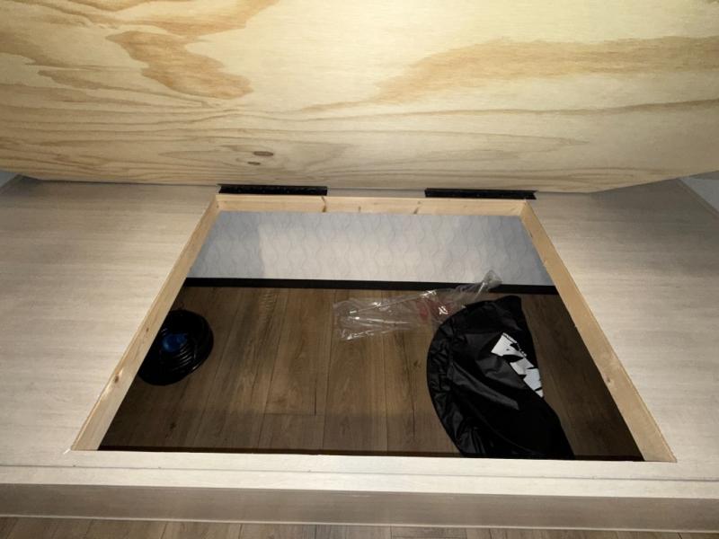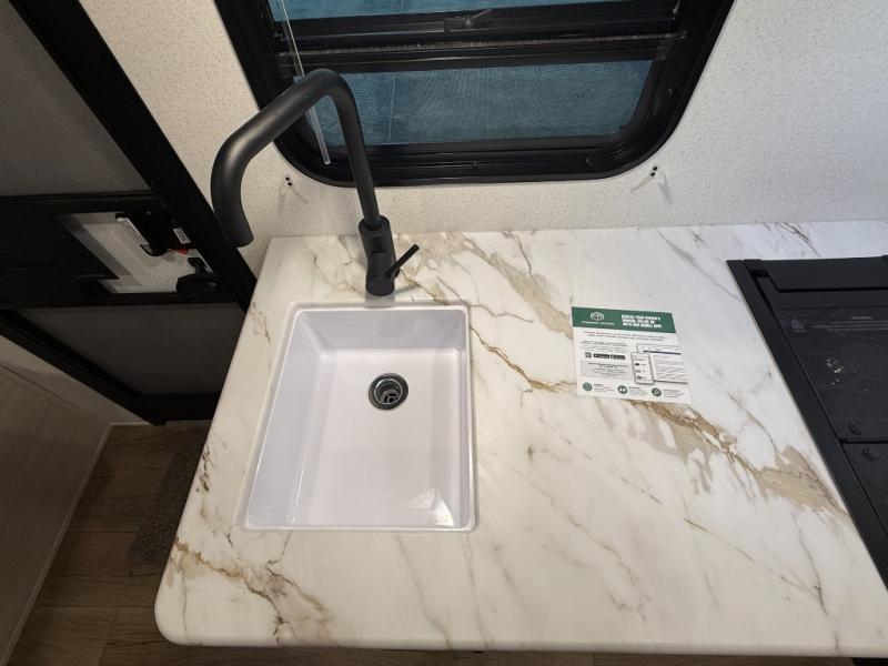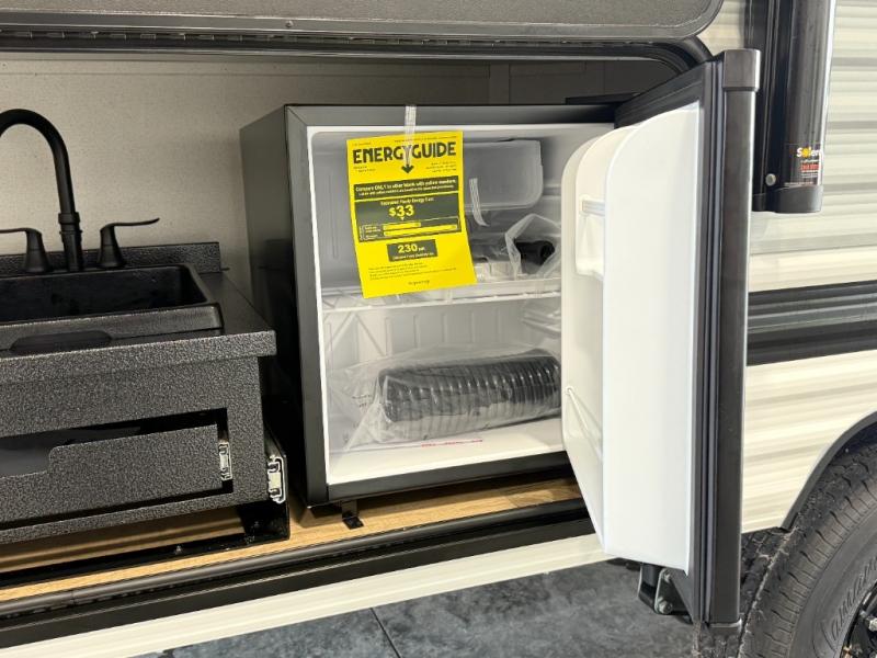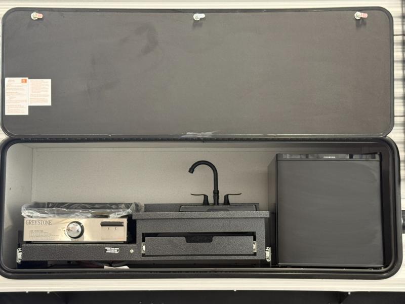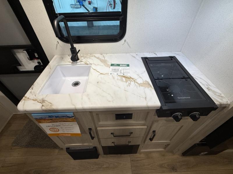 The whole gang will love camping in this travel trailer since there are double-size bunks for compact sleeping spaces and a slide out for more space to relax! The front RV queen bed is sure to provide a great night's rest, and you can choose the optional Murphy bed if you're needing more seating space during the day. Once you've made dinner on the two burner cooktop, you can dine around the U-shaped dinette. And an optional mini kitchen with a griddle is available if you'd rather cook outdoors! This unit includes ample storage space for your things, including exterior storage and storage under the bunks!